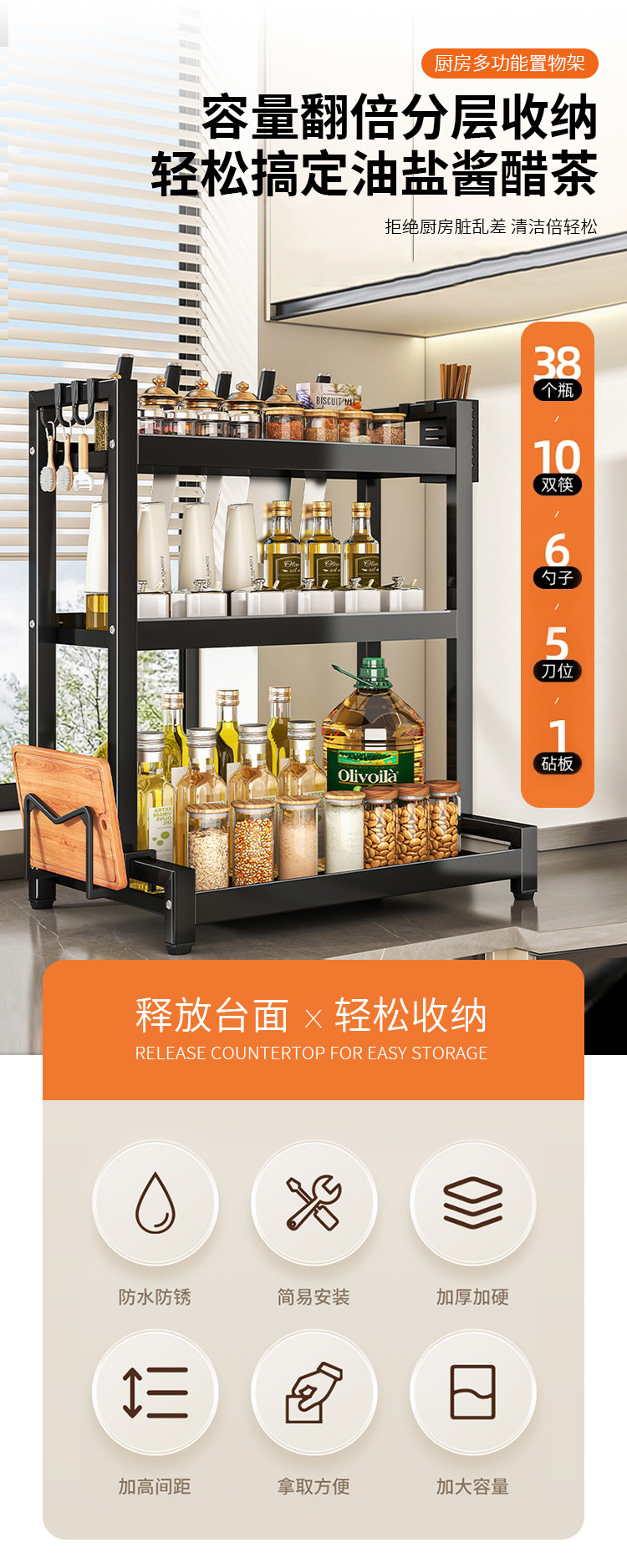 엄선된 조미료 보관함 주방 다용도 조리대 기름, 소금, 소스, 식초, 조미료 보관함 신제품