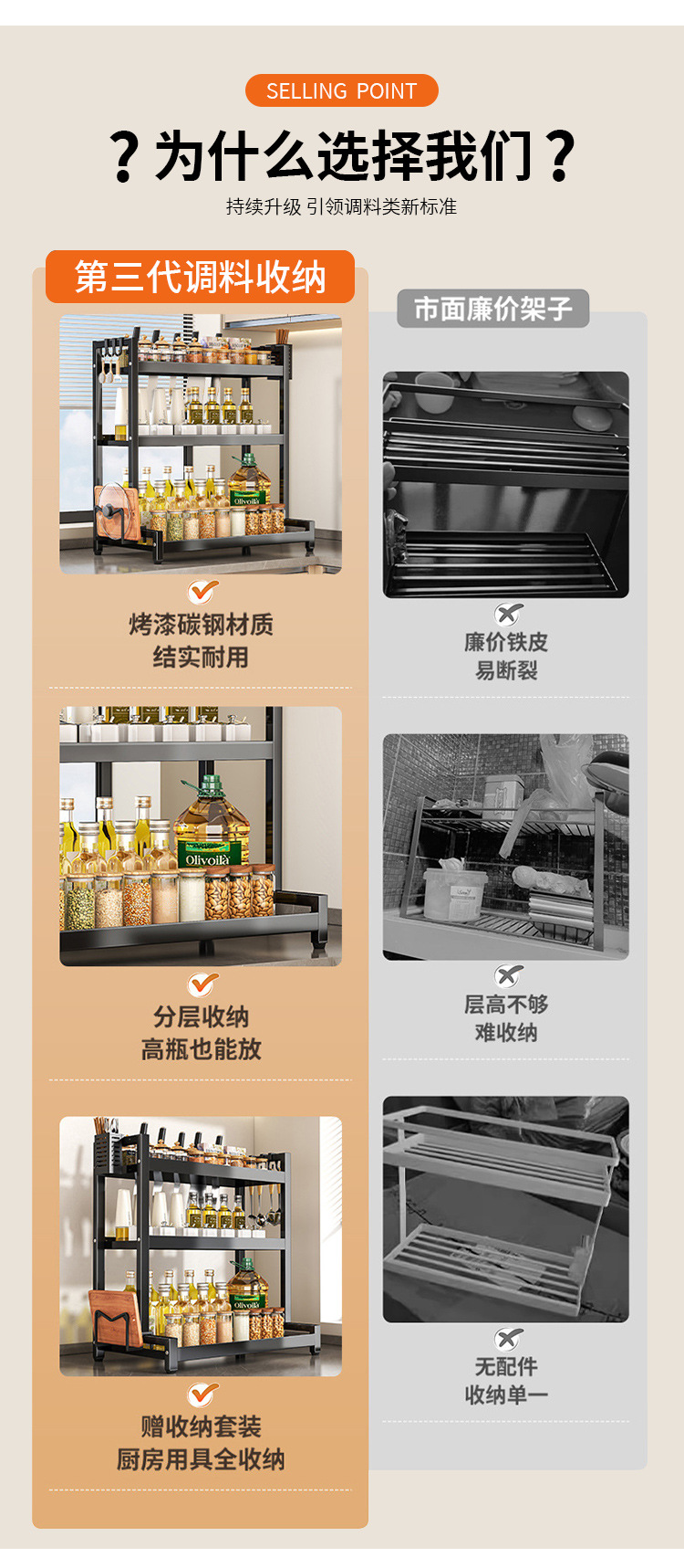 엄선된 조미료 보관함 주방 다용도 조리대 기름, 소금, 소스, 식초, 조미료 보관함 신제품스토어 가기