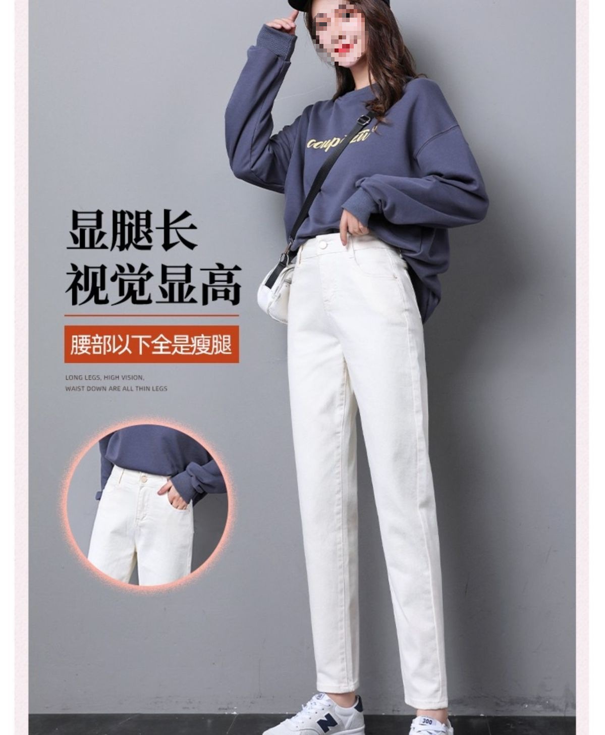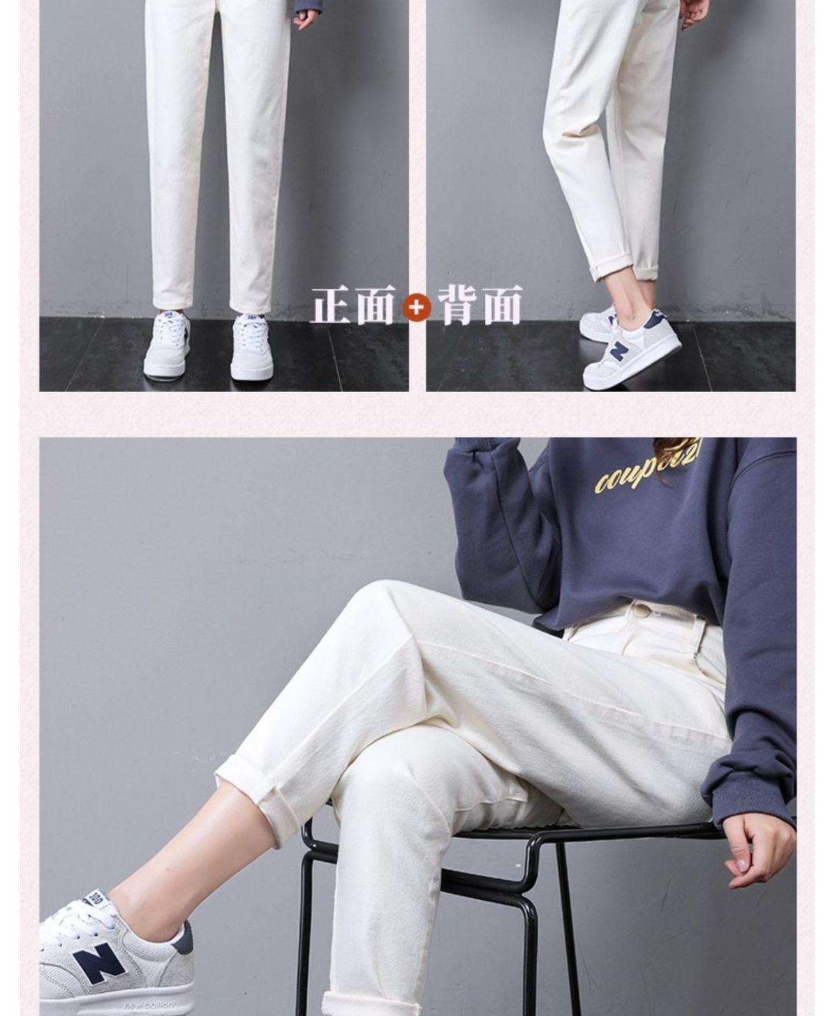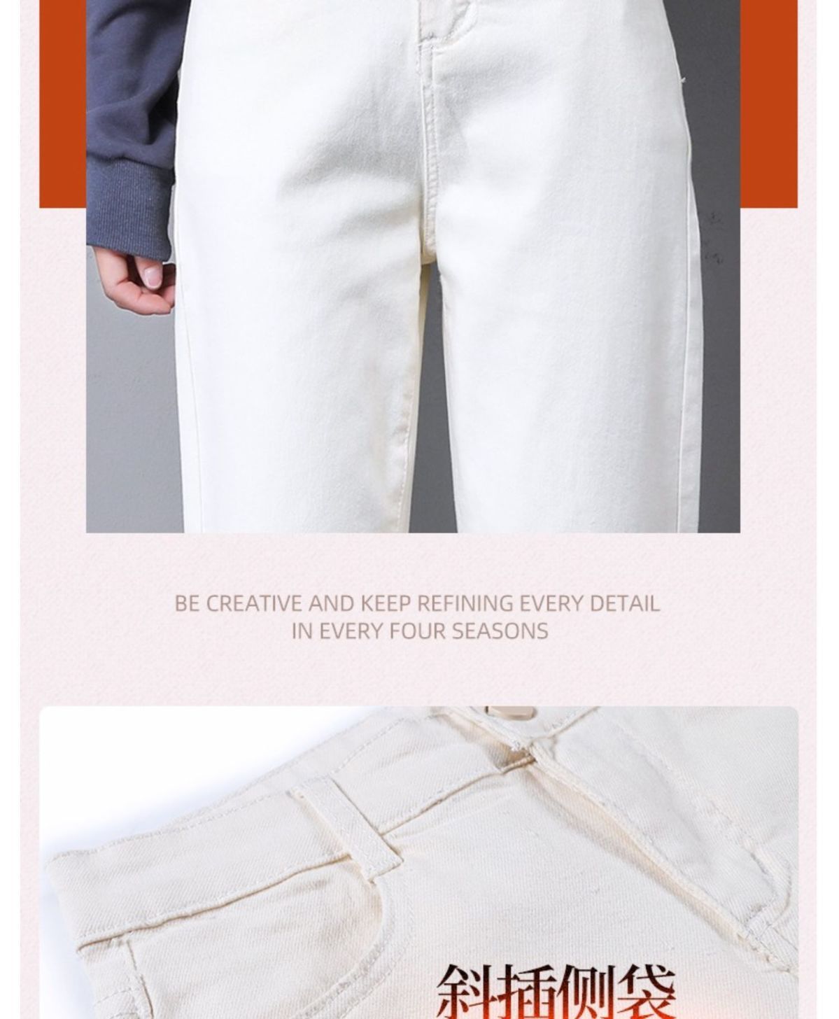 봄과 여름 새 쌀 화이트 한국 스타일 느슨한 스트레이트 청바지 여성 높은 허리 슬리밍 올 매치 와이드 다리 아빠 할란스토어 가기