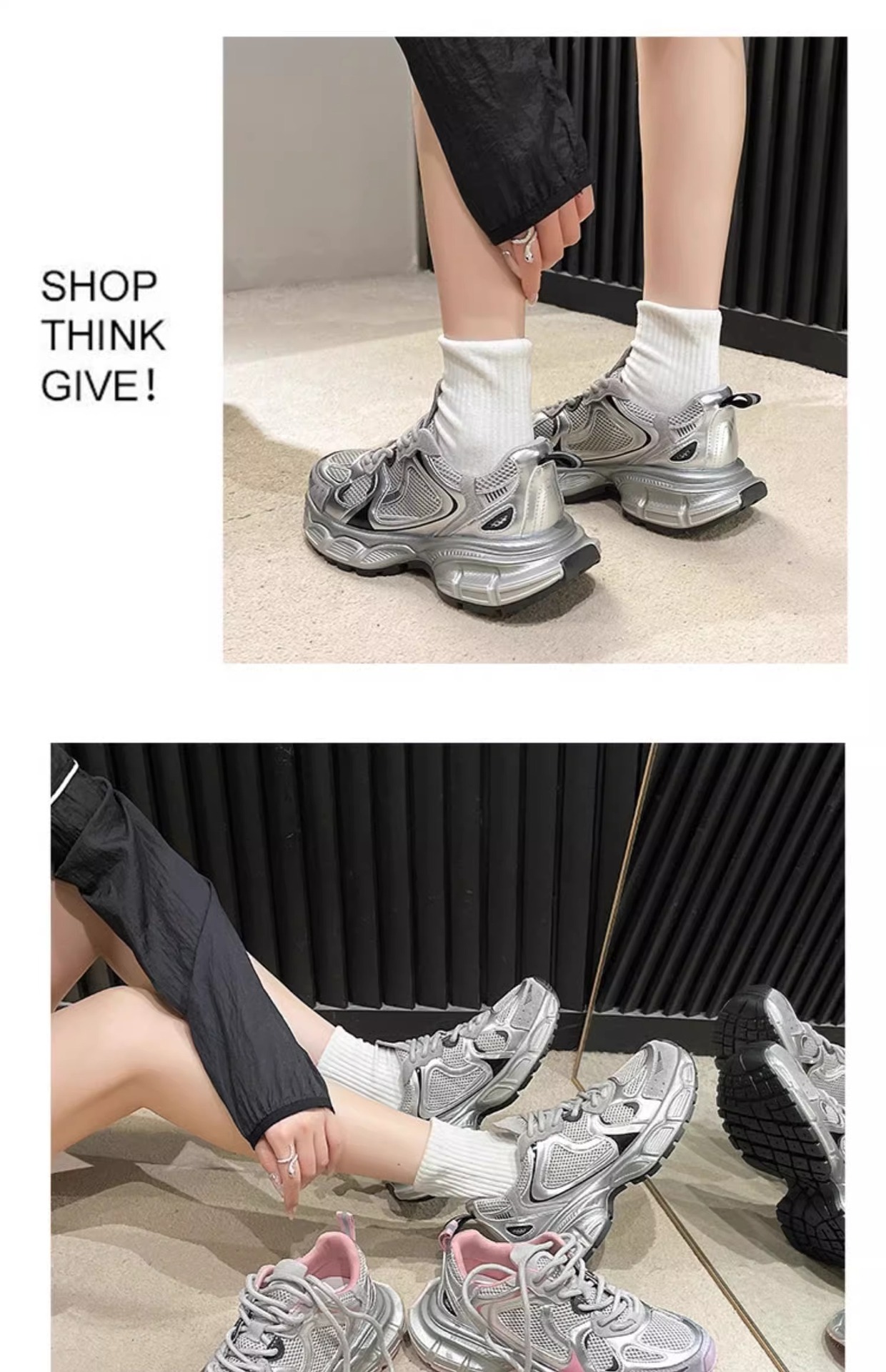 두꺼운 단독 높이 증가 토레 신발 여성의 2025 봄 새 실버 여성 신발 경량 여성 신발 스포츠 캐주얼 신발