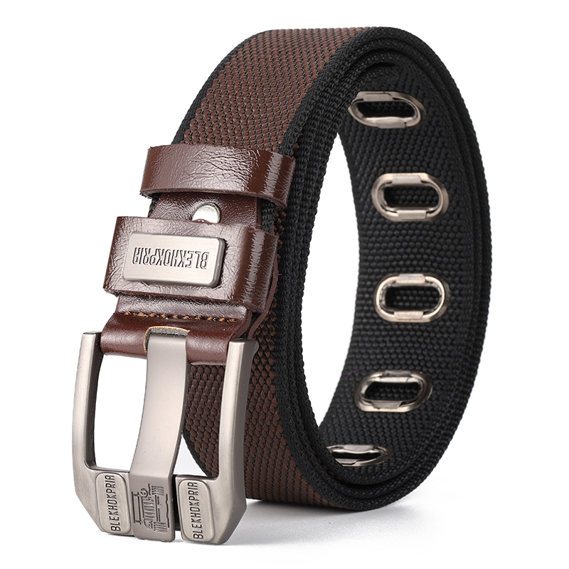 남자 전술 벨트 나일론 핀 버클 벨트 청소년 캐주얼 올 매치 캔버스 바지 벨트 군사 훈련 양면 구슬 벨트