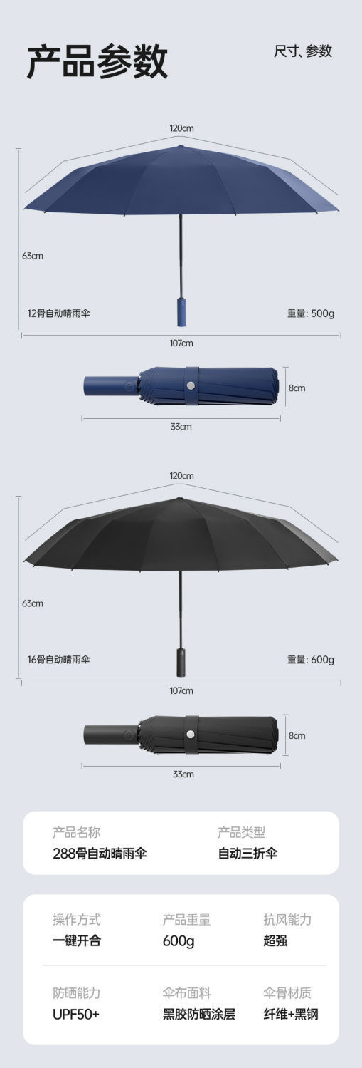 완전 자동 우산 폭풍 방지 288 뼈 접히는 강화 추가 두꺼운 이중 목적 우산 고가 휴대용 우산스토어 가기