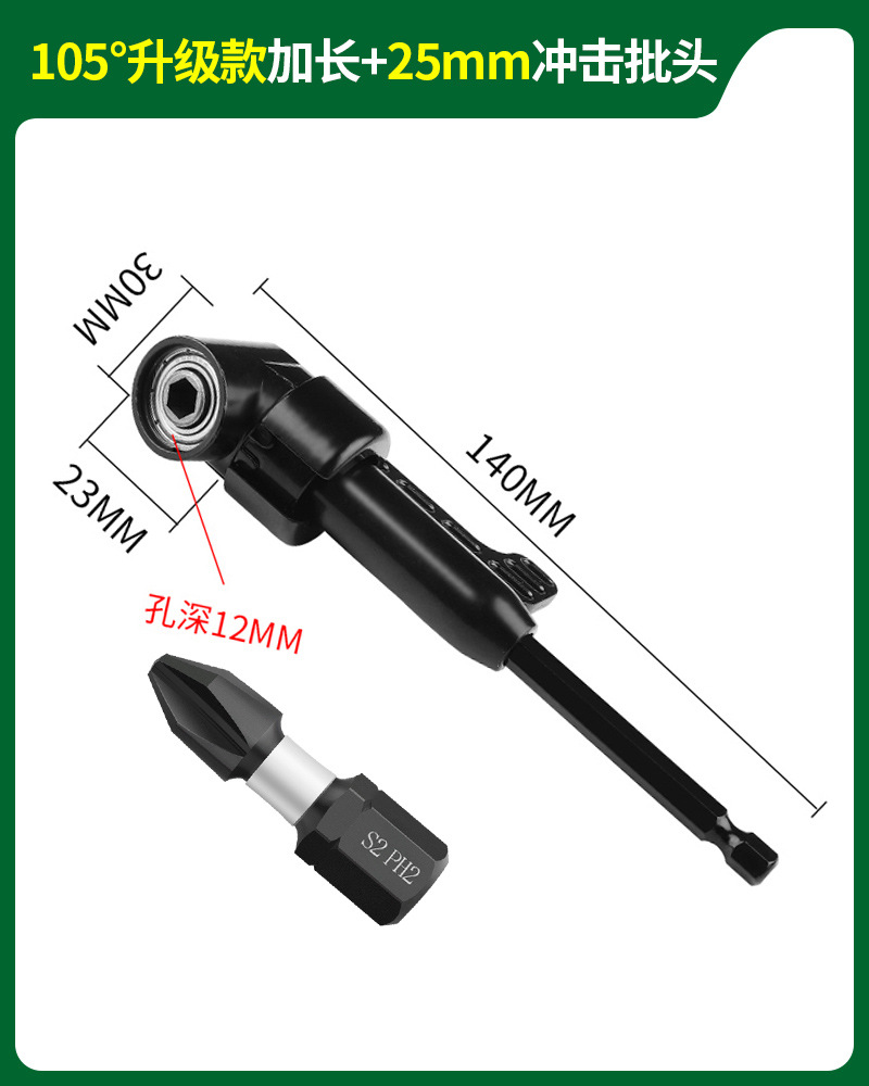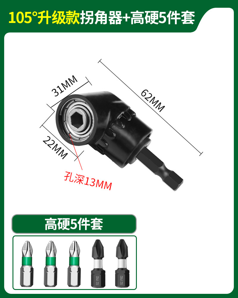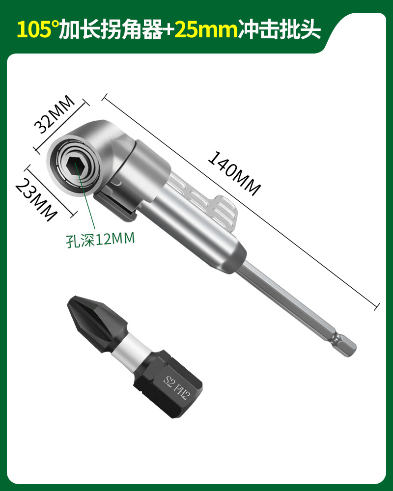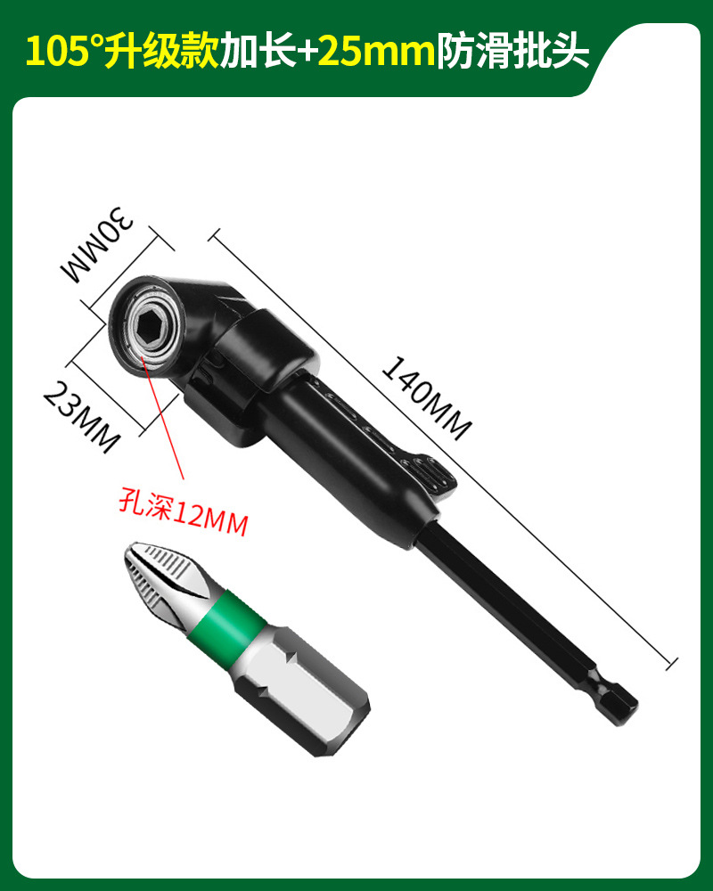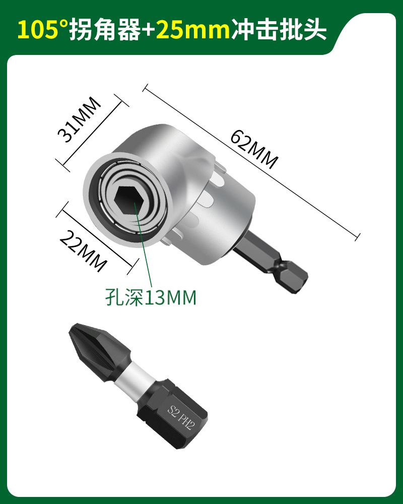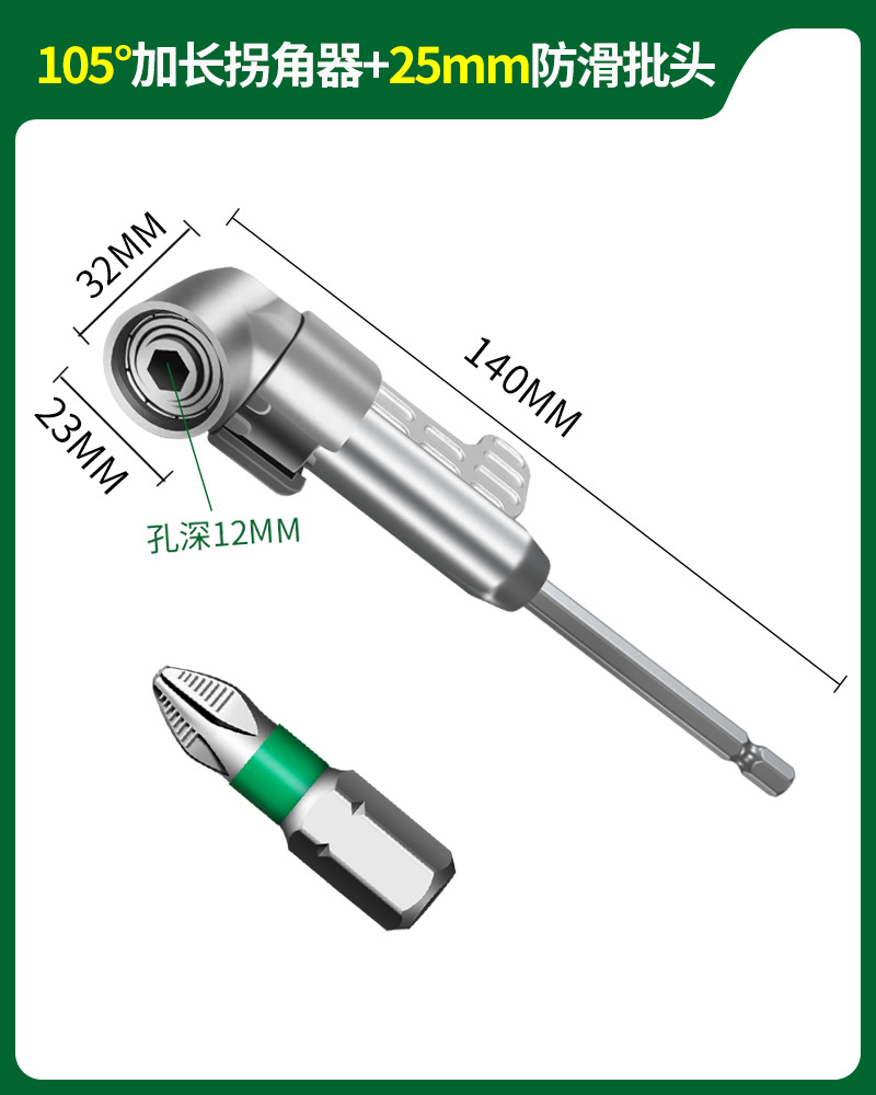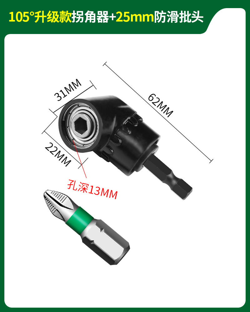 • 긴 105도 코너러 + 25mm 미끄럼 방지 비트