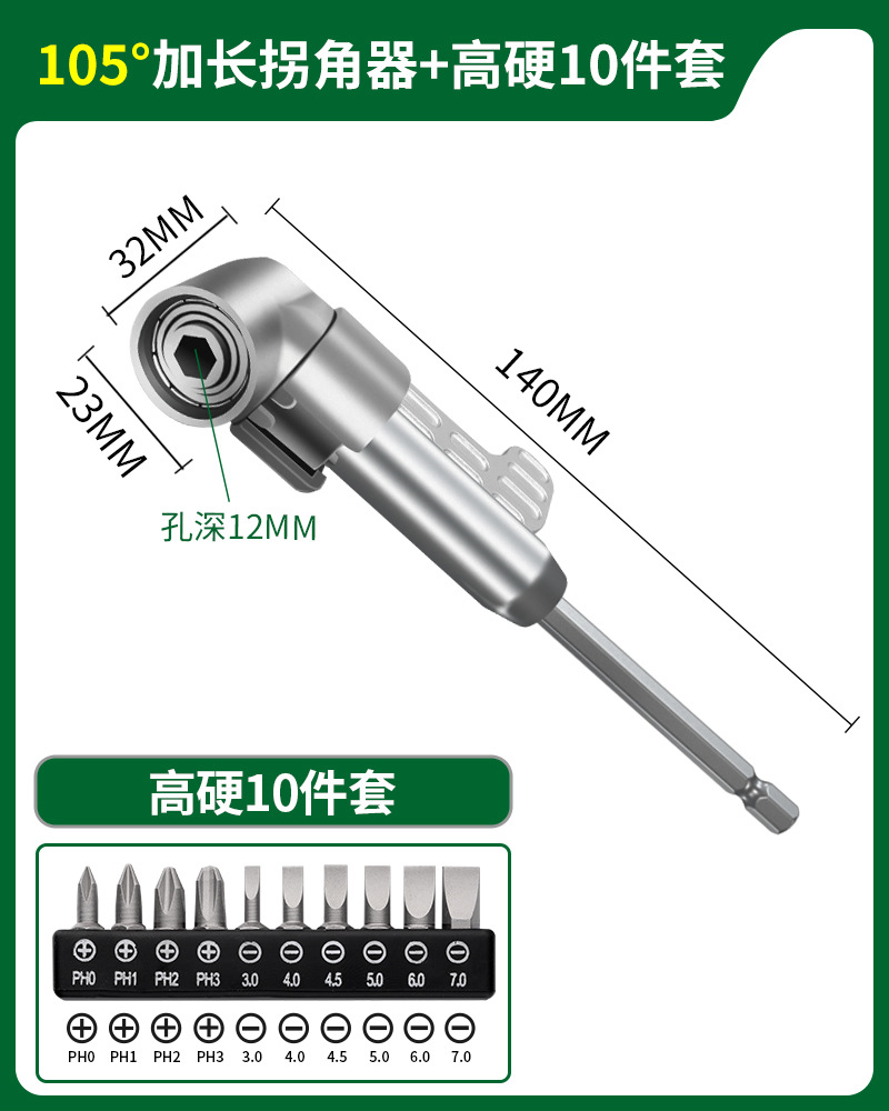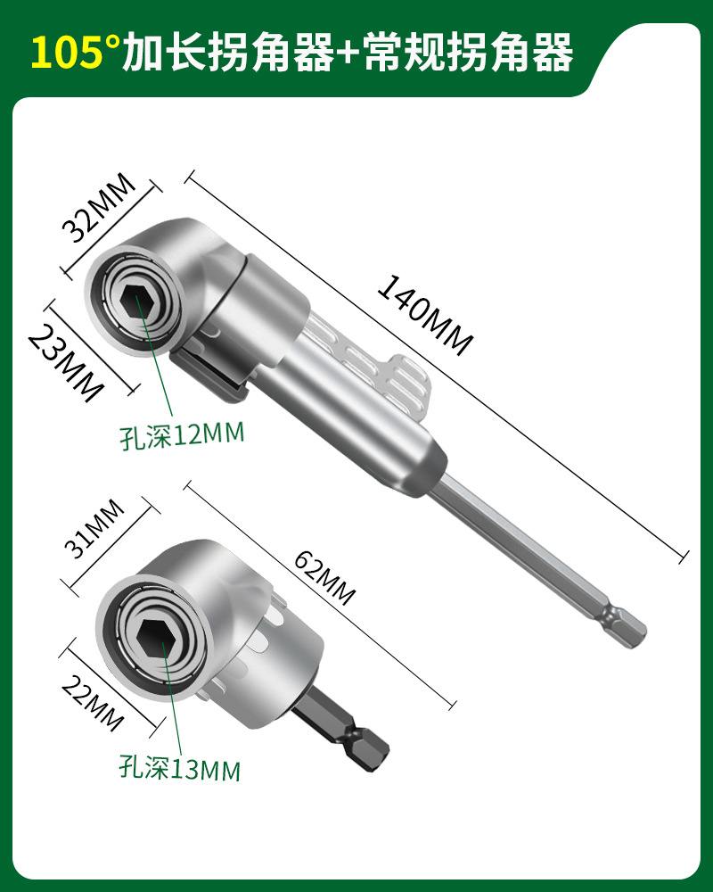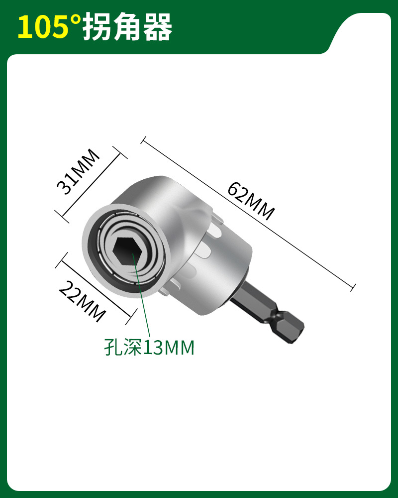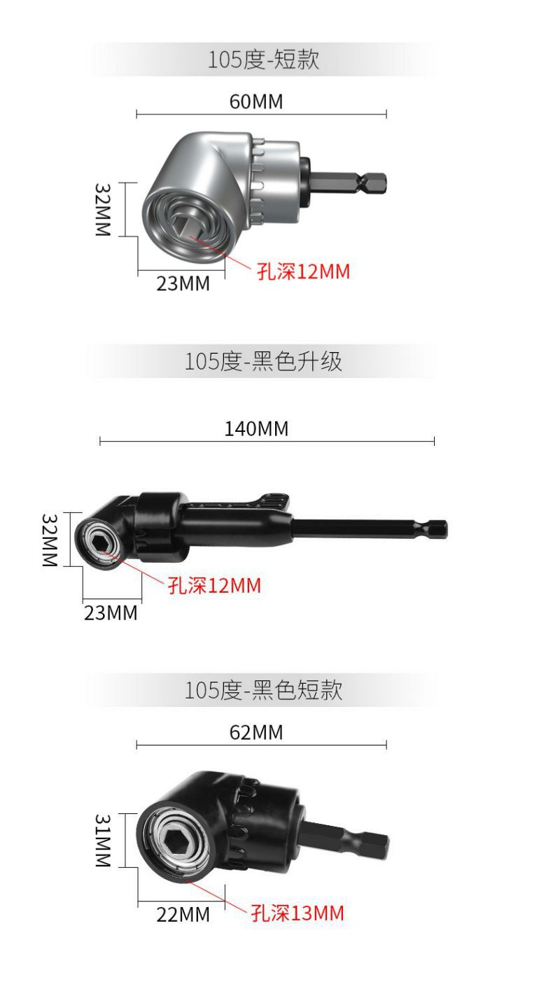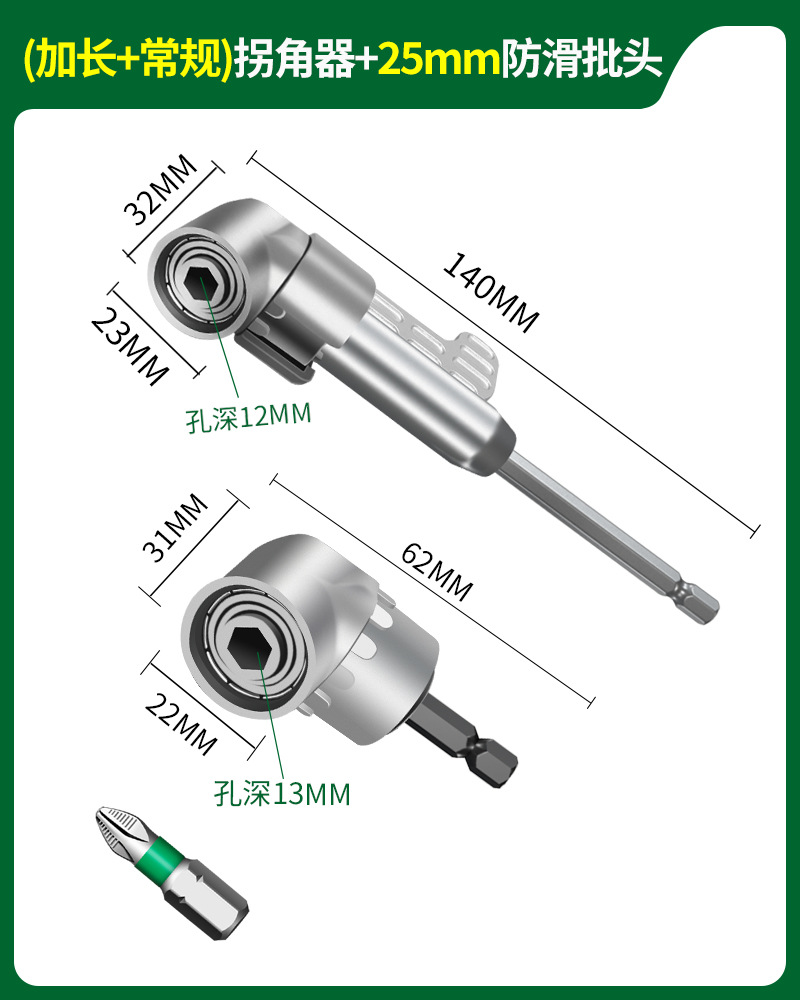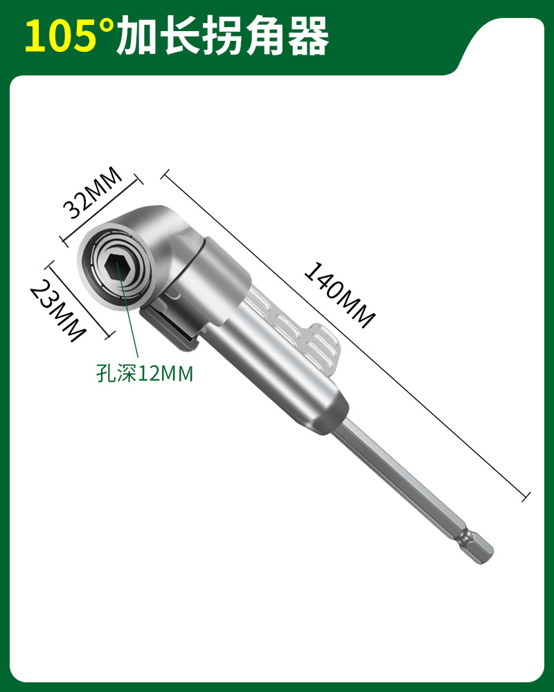 • 긴 105도 코너러 + 25mm 미끄럼 방지 비트