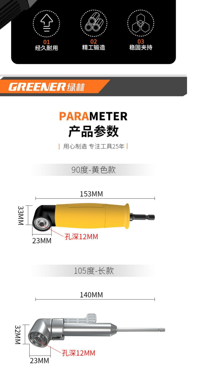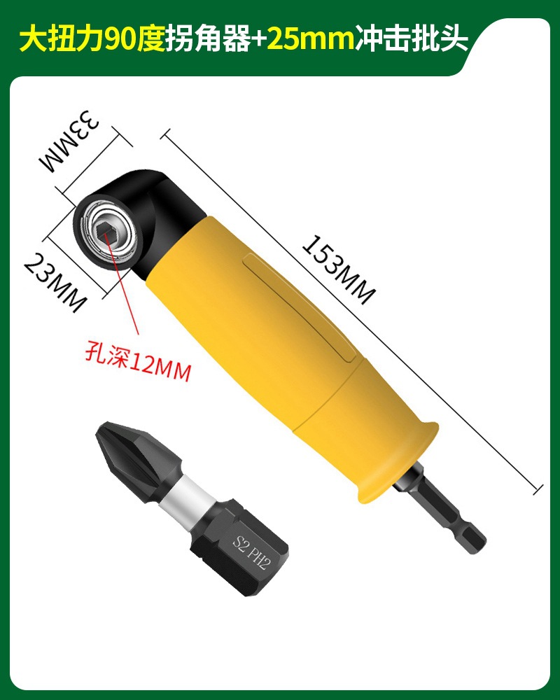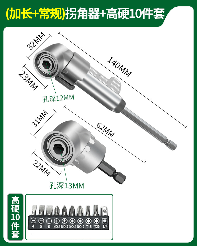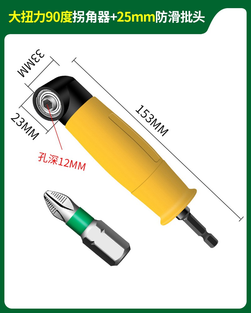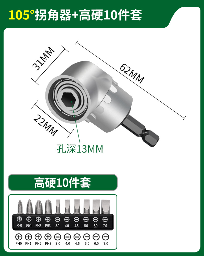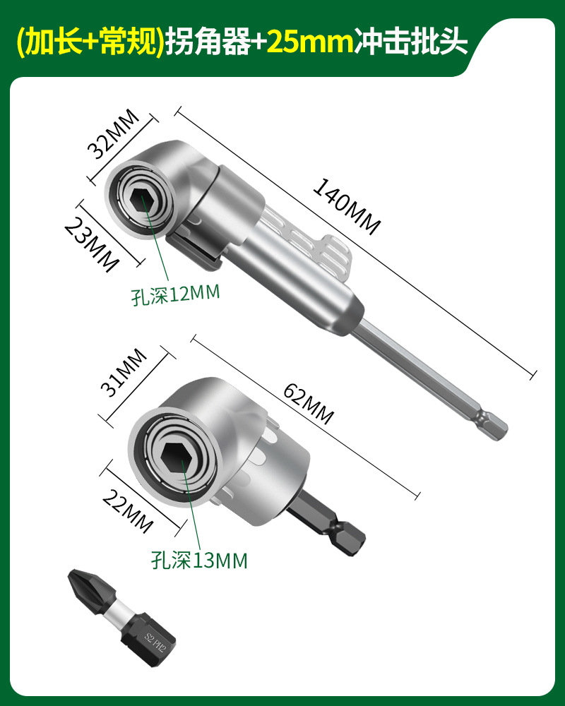 • 긴 105도 코너러 + 25mm 미끄럼 방지 비트