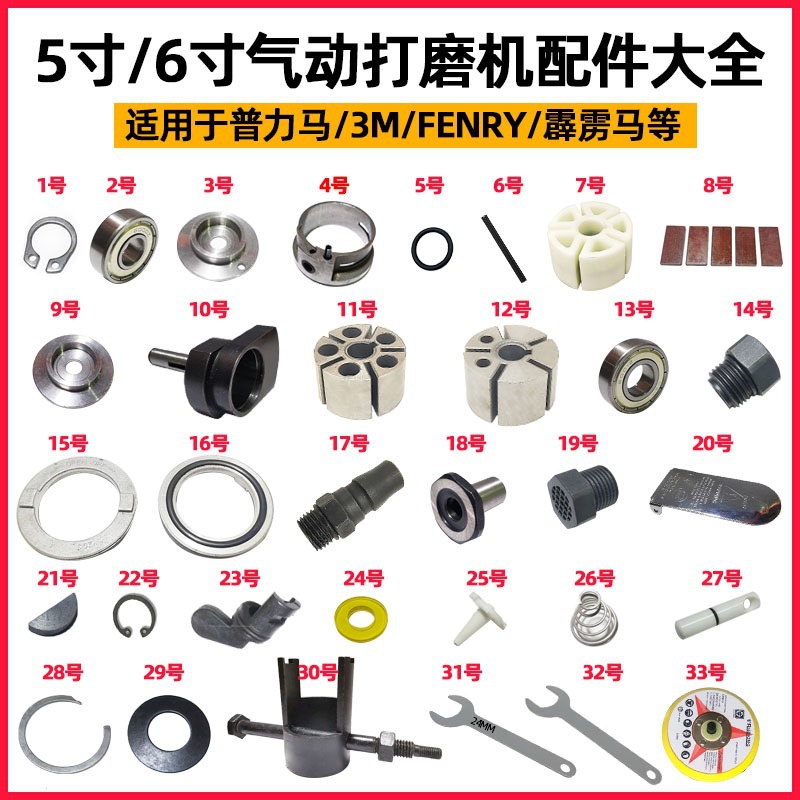 중국 무역 유지 보수 도구 인치 에어 밀 5 밀봉 링 공압 그라인더 로터 스위치 6 베어링 블레이드 실린더 액세서리