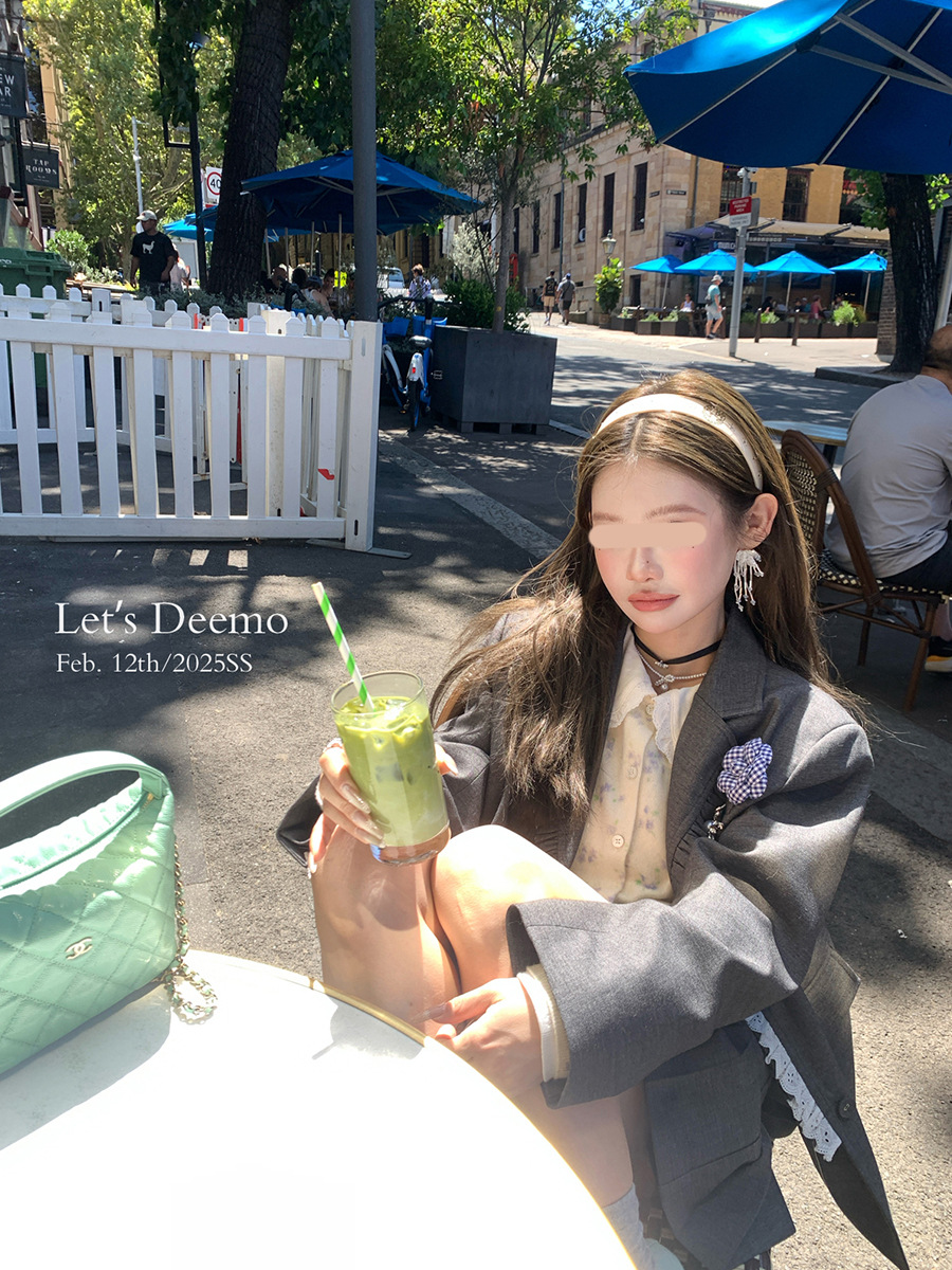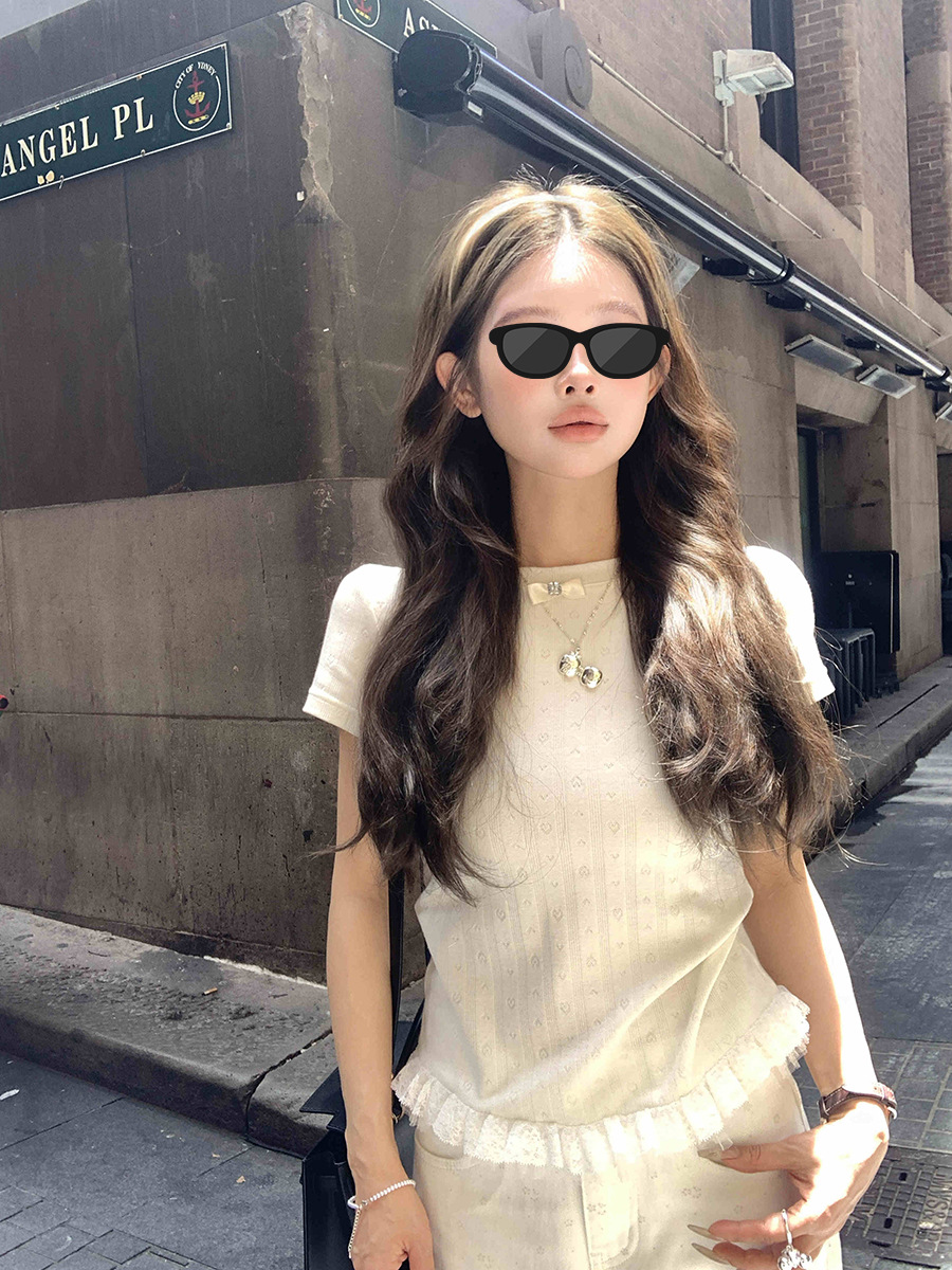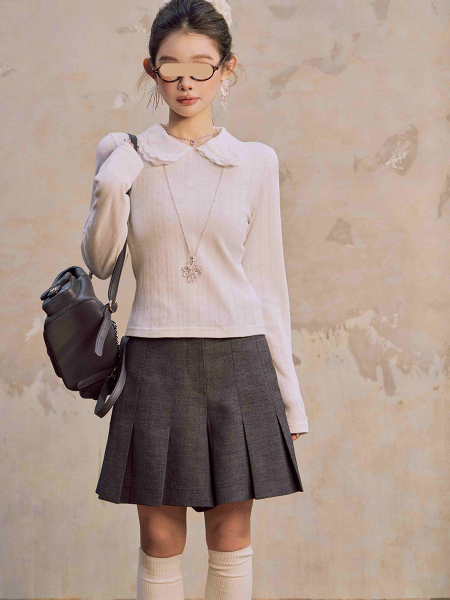 디모 스튜디오0【착한 소녀】연령 감소 효과와 쾌활한 분위기의 레이스 다용도 하트 자카드 니트