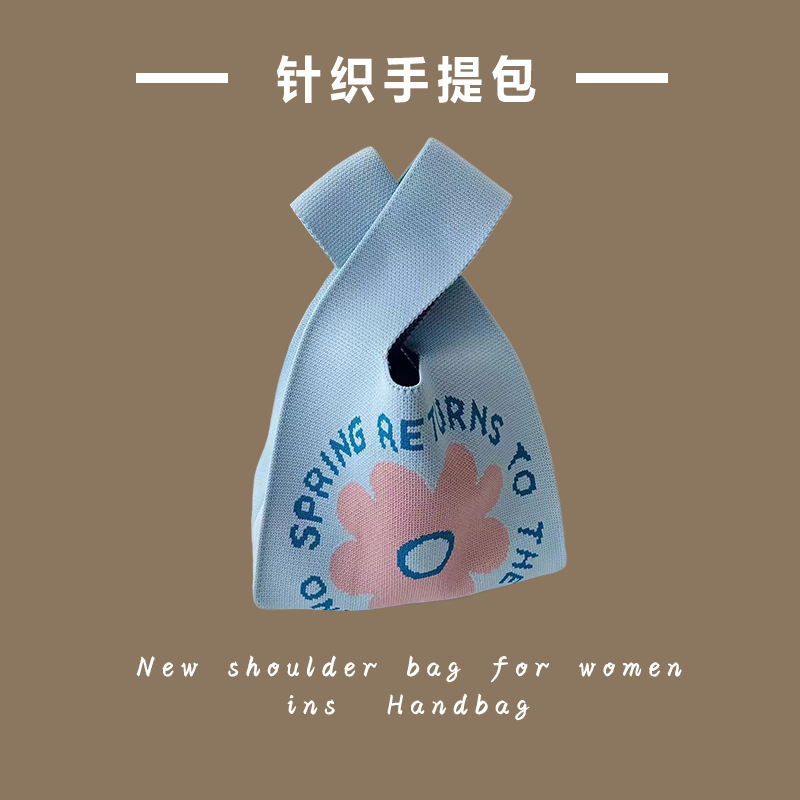 다채로운 니트 손목 가방 올 매치 컬러 매칭 조끼 가방 휴대용 점심 가방 캐주얼 핸드백
