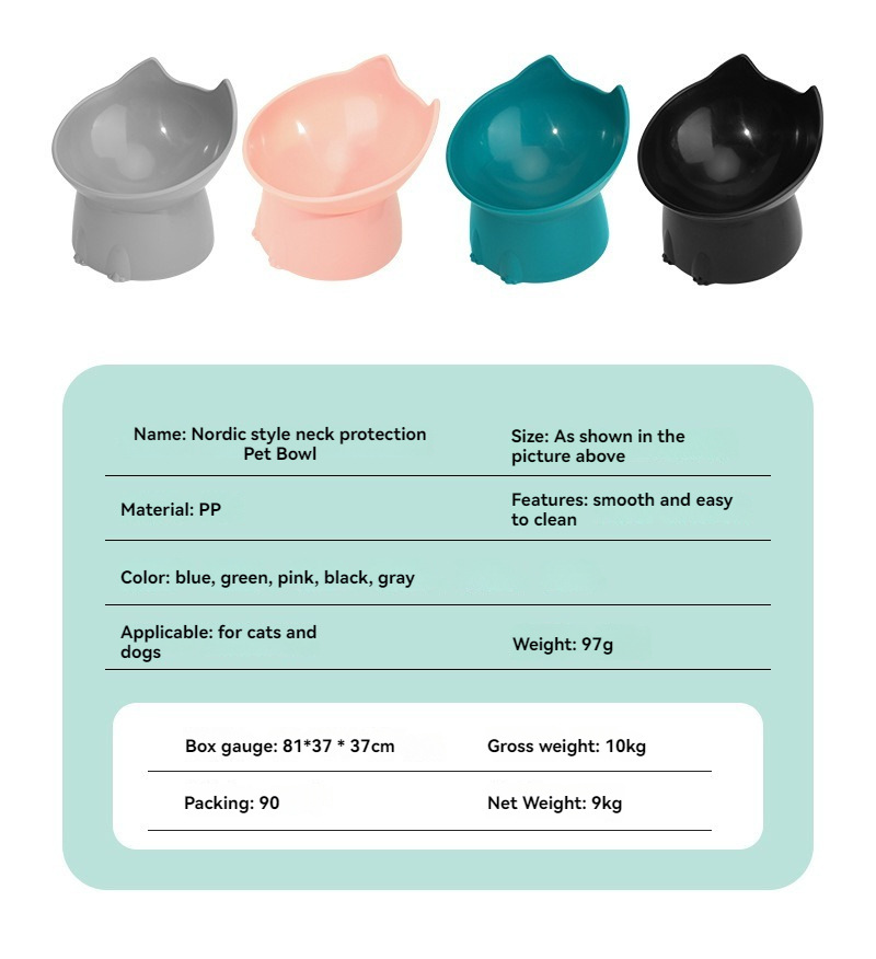 국경을 넘는 긴 귀와 높은 고양이 그릇, 대용량 기울어진 만화 고양이와 개 목 보호대, 플라스틱 강화 애완 동물 그릇스토어 가기