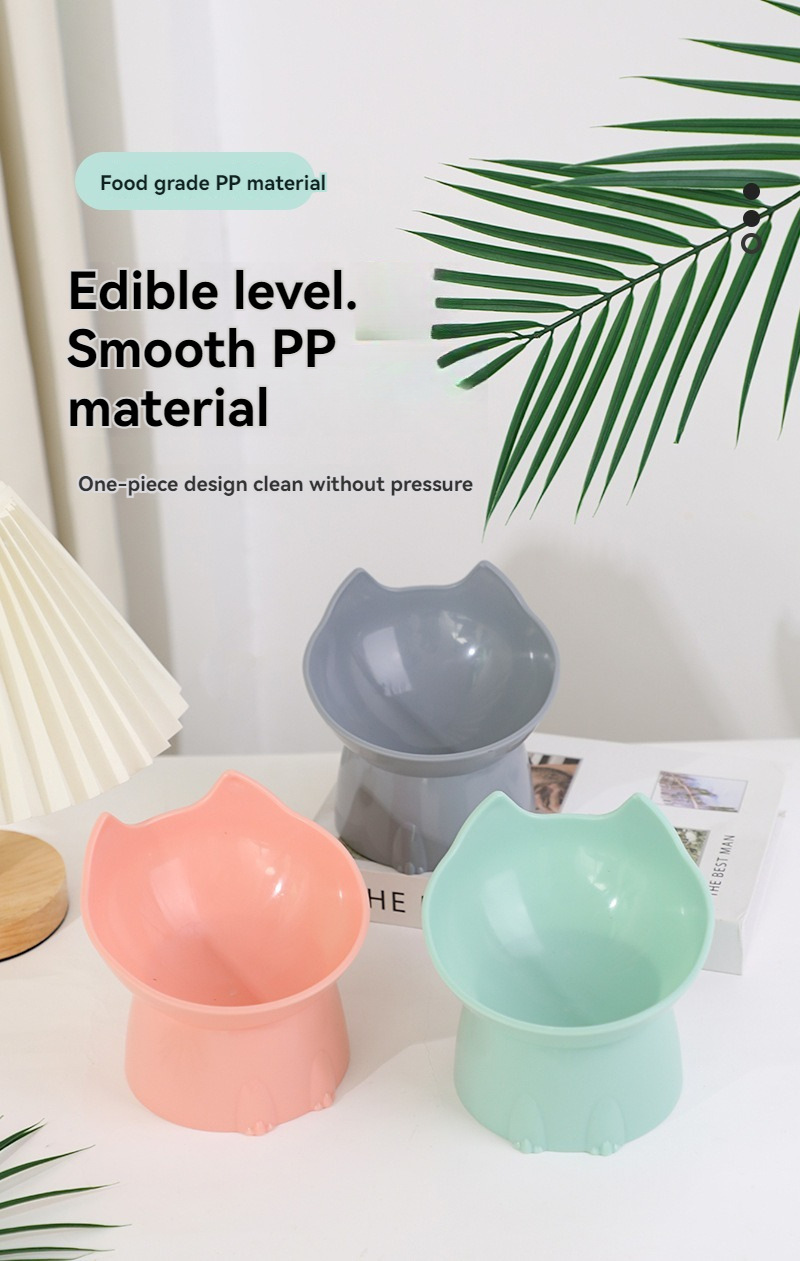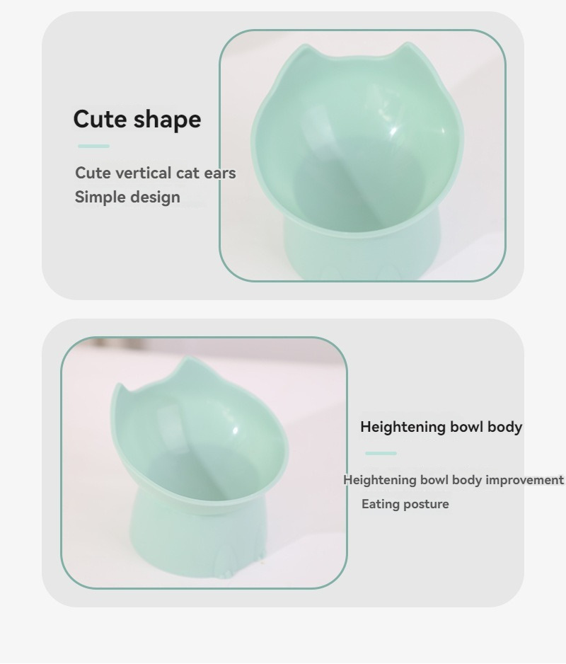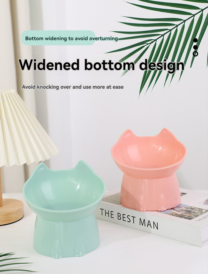 국경을 넘는 긴 귀와 높은 고양이 그릇, 대용량 기울어진 만화 고양이와 개 목 보호대, 플라스틱 강화 애완 동물 그릇