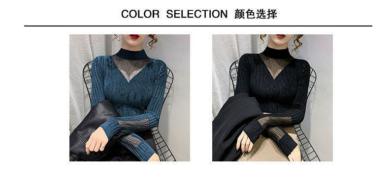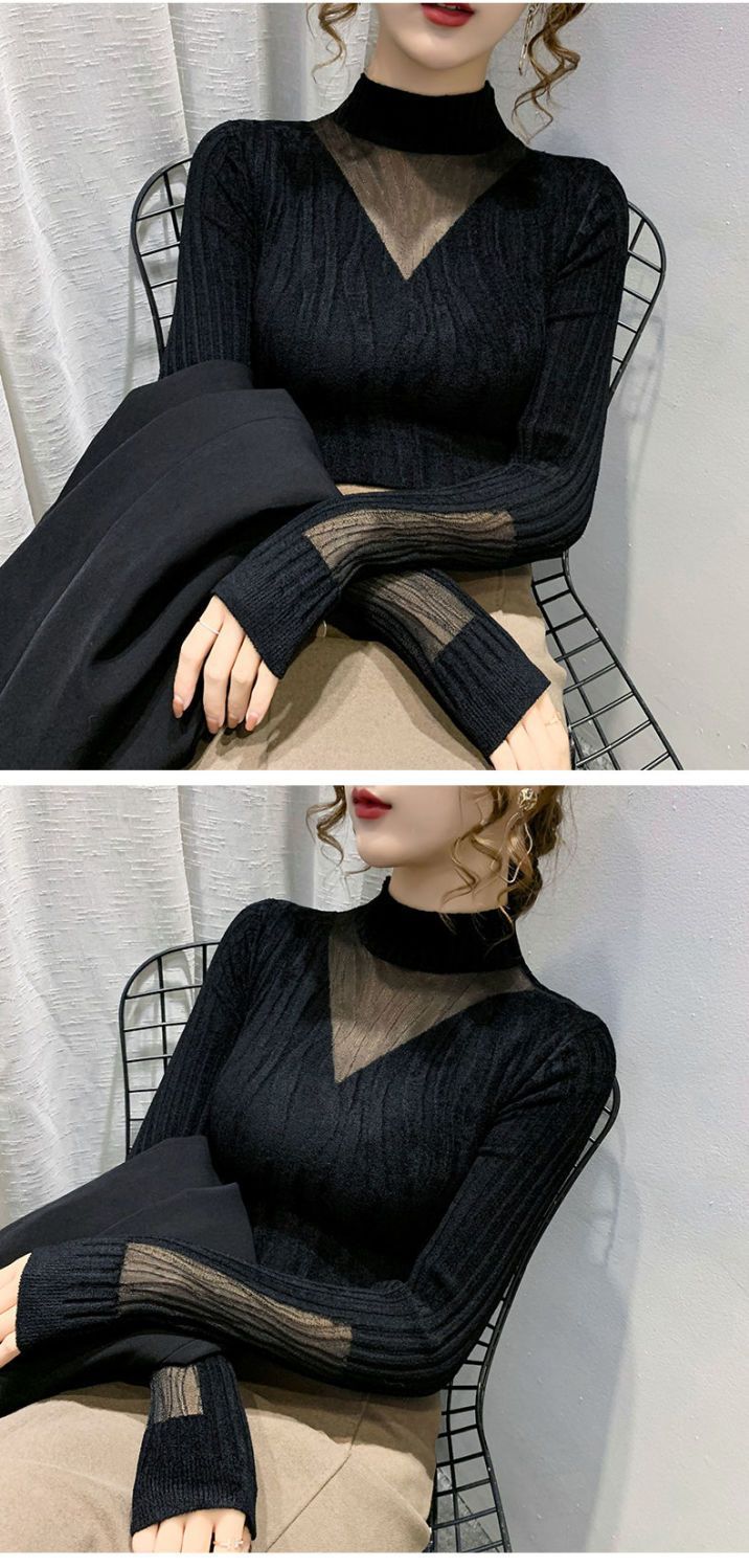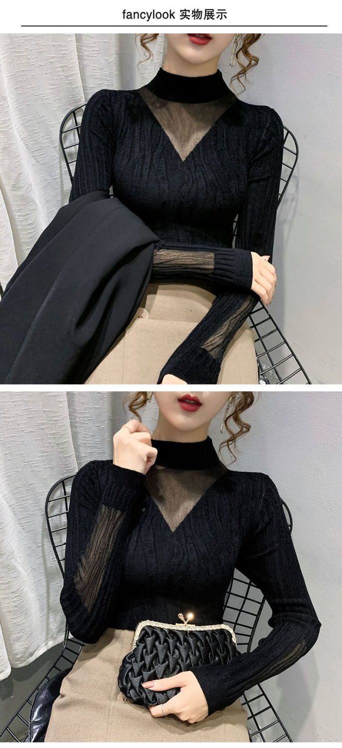 검은 레이스 가을과 겨울 내부 반 높은 칼라 얇은 스웨터 여성의 새로운 복장 유행 니트 베이스 셔츠 최고 트렌디스토어 가기