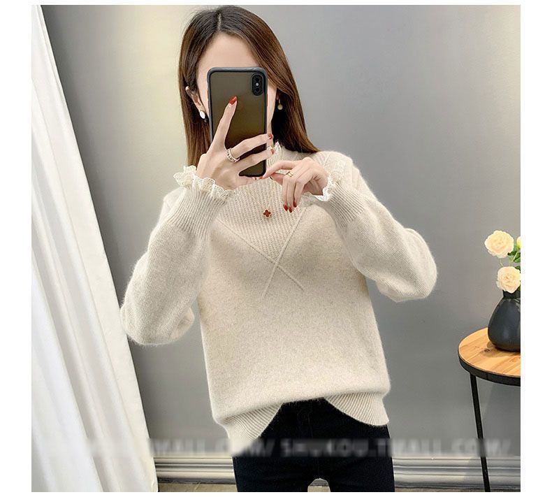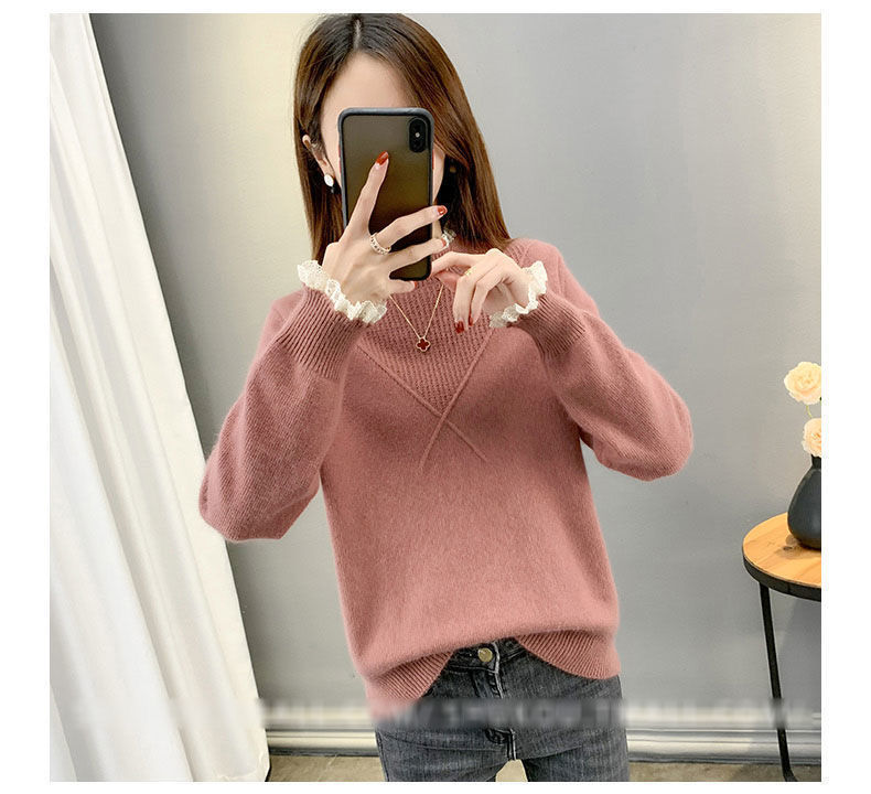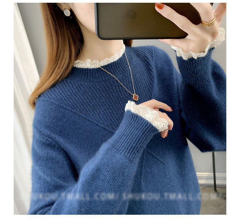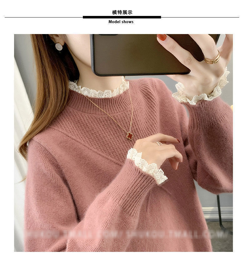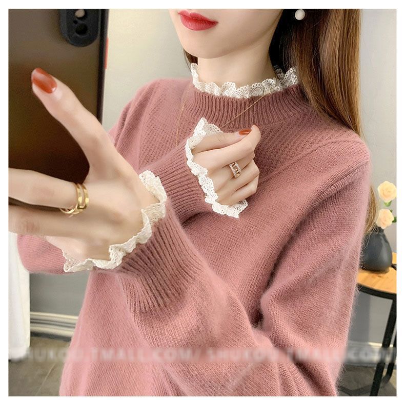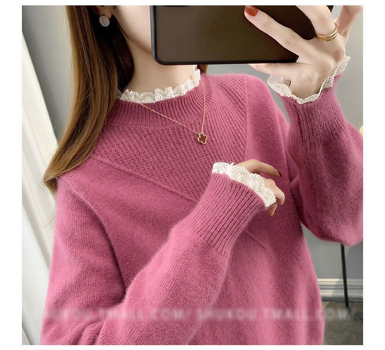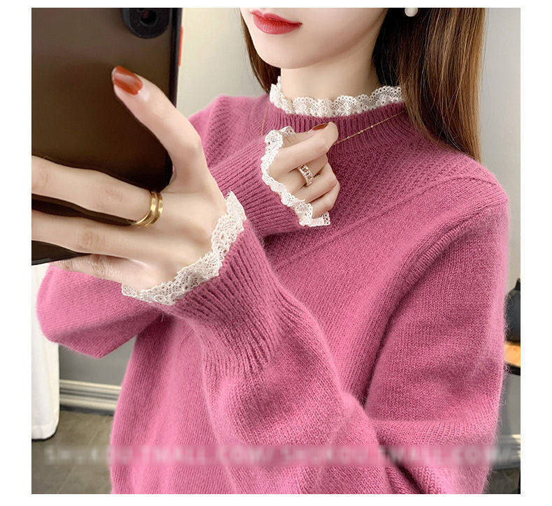 두꺼운 스웨터 가을과 겨울 새로운 하프 터틀넥 레이스 스티칭 니트베이스 셔츠 여성용 내부 입고 외국 스타일