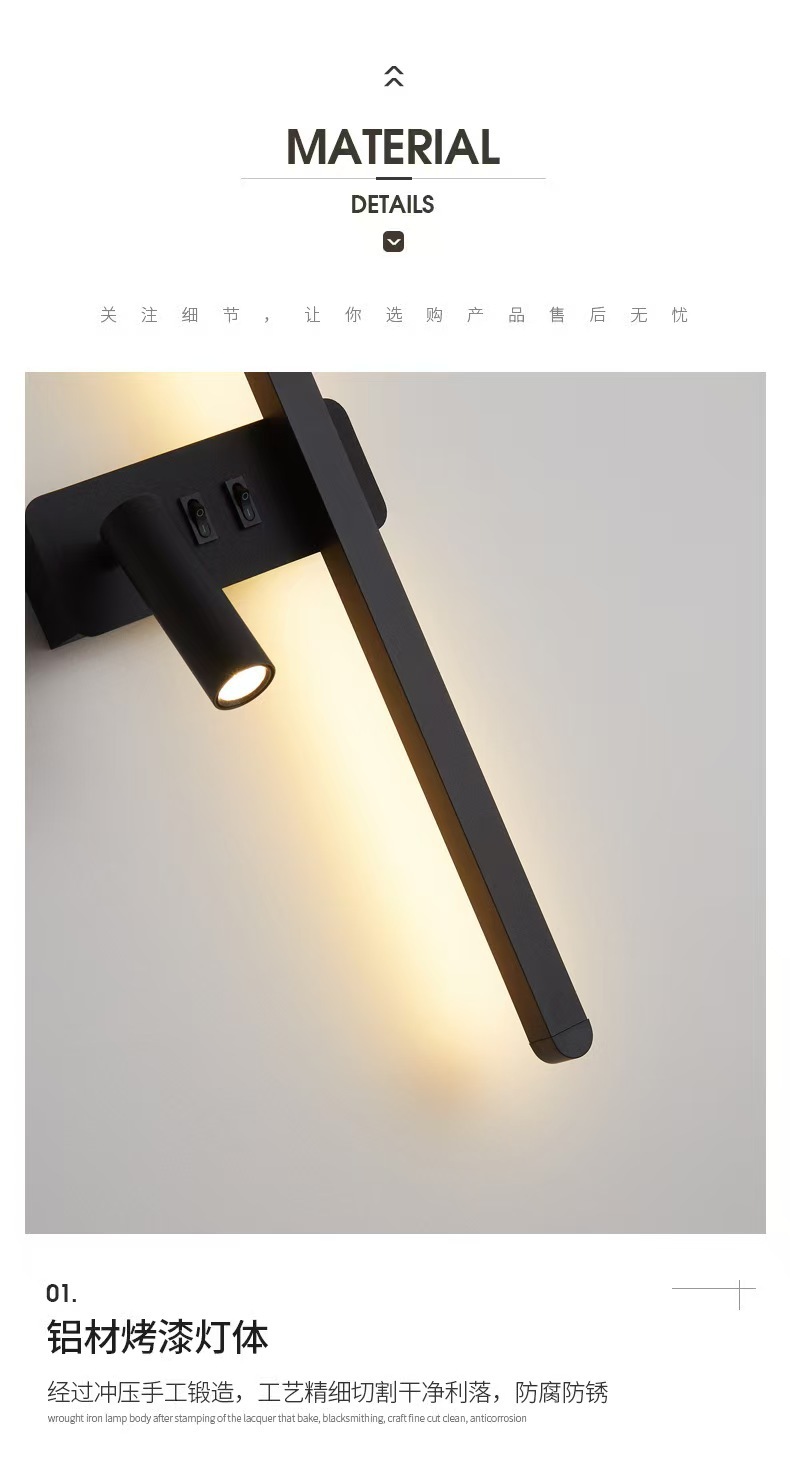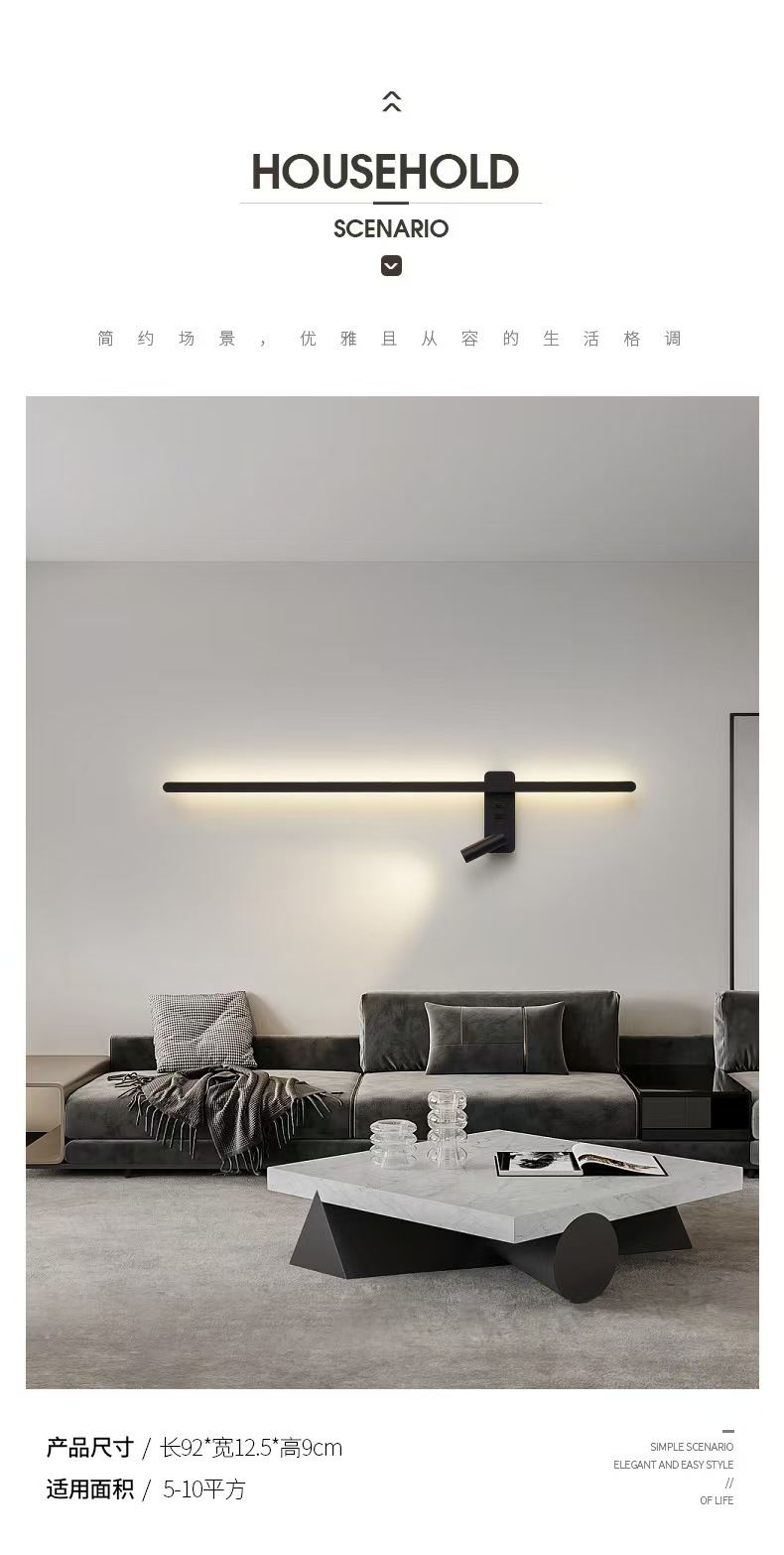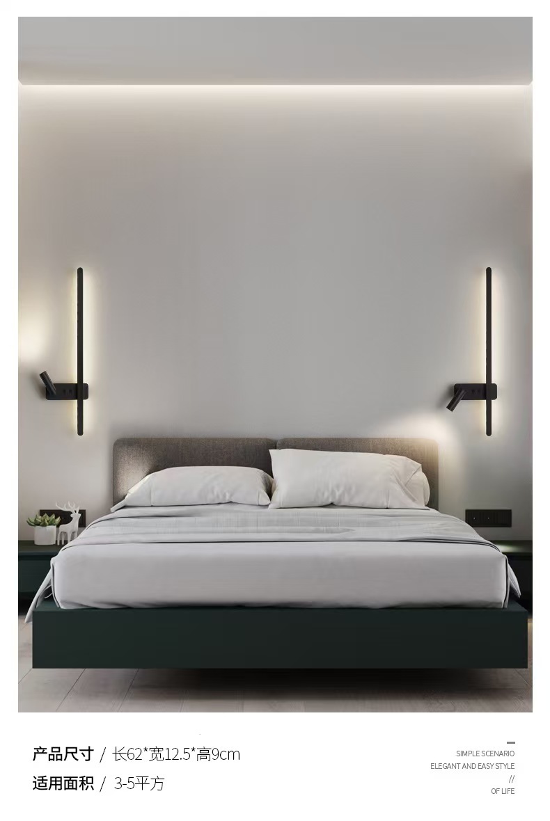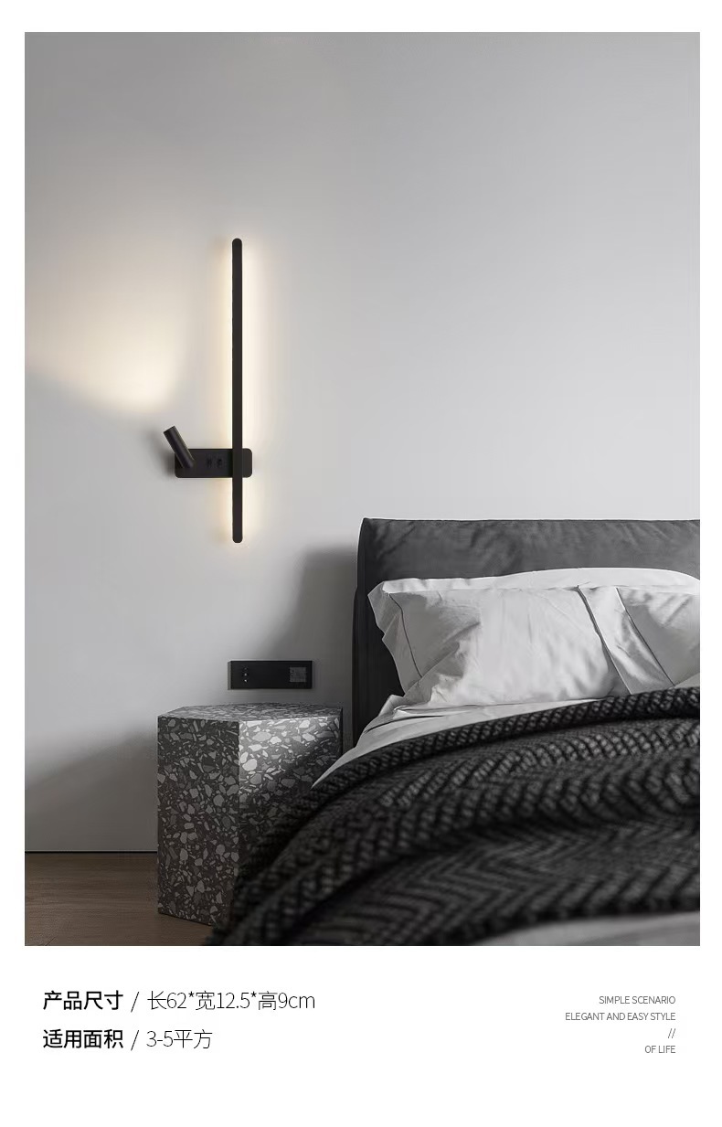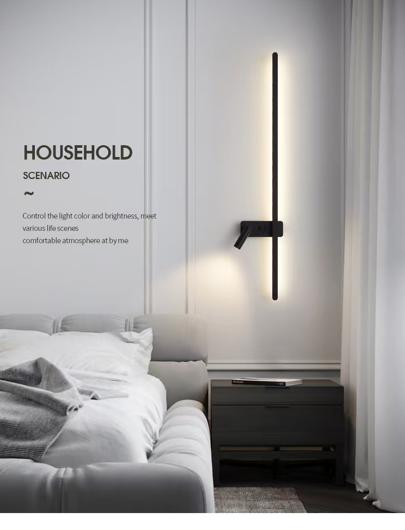 최소한의 벽 램프 긴 스트립 스위치 거실 TV 배경 벽 스포트라이트 한 단어 침실 독서 침실 램프