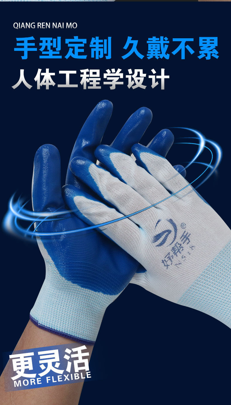니트릴 고무 교수형 현장 작업 장갑 오일 방지 미끄럼 방지 착용 방지 찌르기 강한 통기성 소스 제조업체 도매스토어 가기