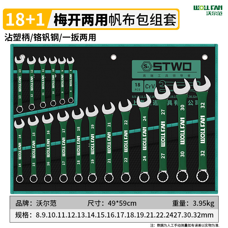 • 녹색 플라스틱 손잡이 콤비네이션 렌치 18개 세트