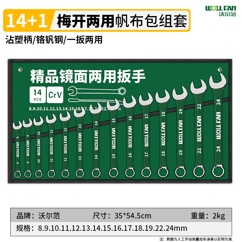 • 녹색 플라스틱 손잡이 이중 목적 렌치 14개 세트