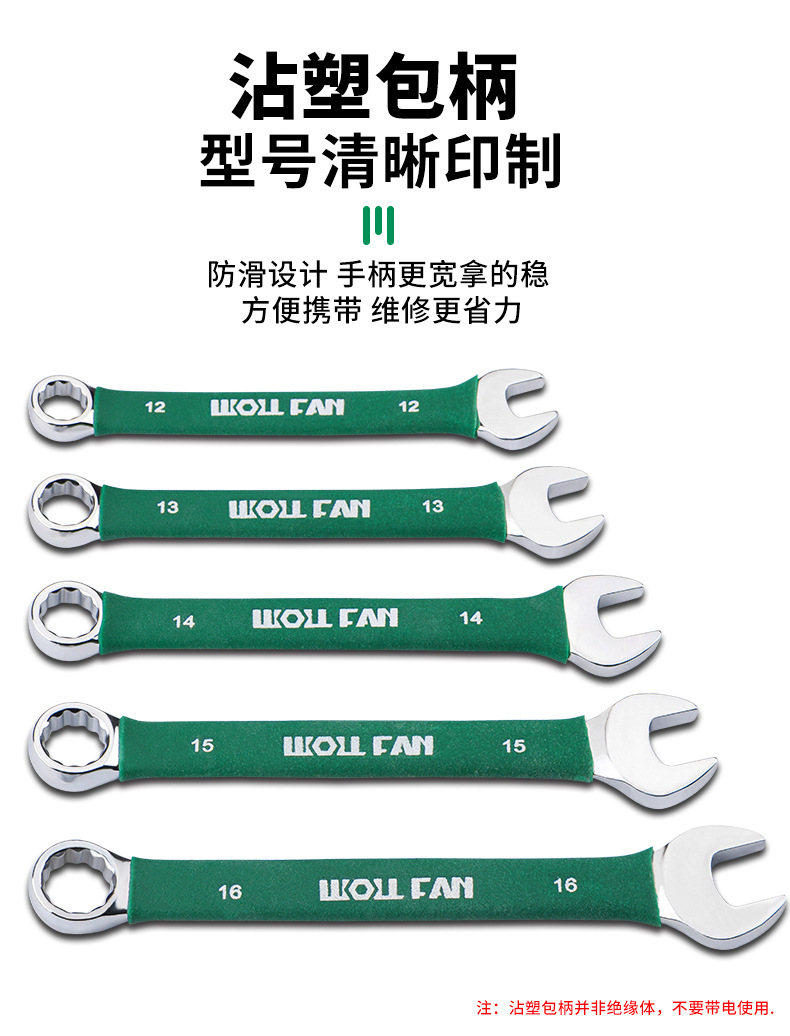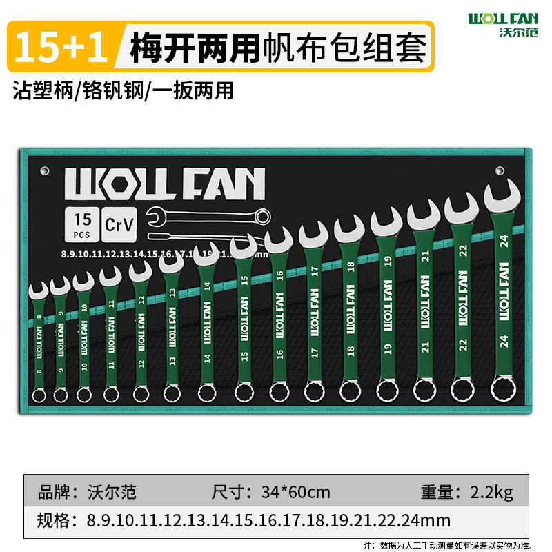• 녹색 플라스틱 손잡이 콤비네이션 렌치 15개 세트