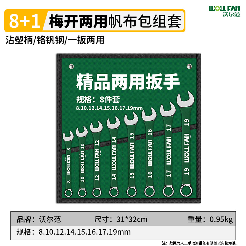 • 녹색 플라스틱 손잡이 이중 목적 렌치 8개 세트