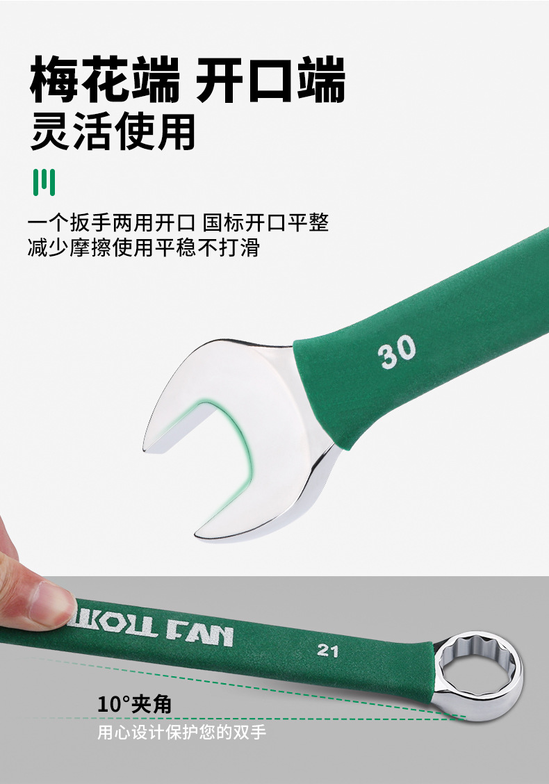 • 녹색 플라스틱 손잡이 이중 목적 렌치 21mm