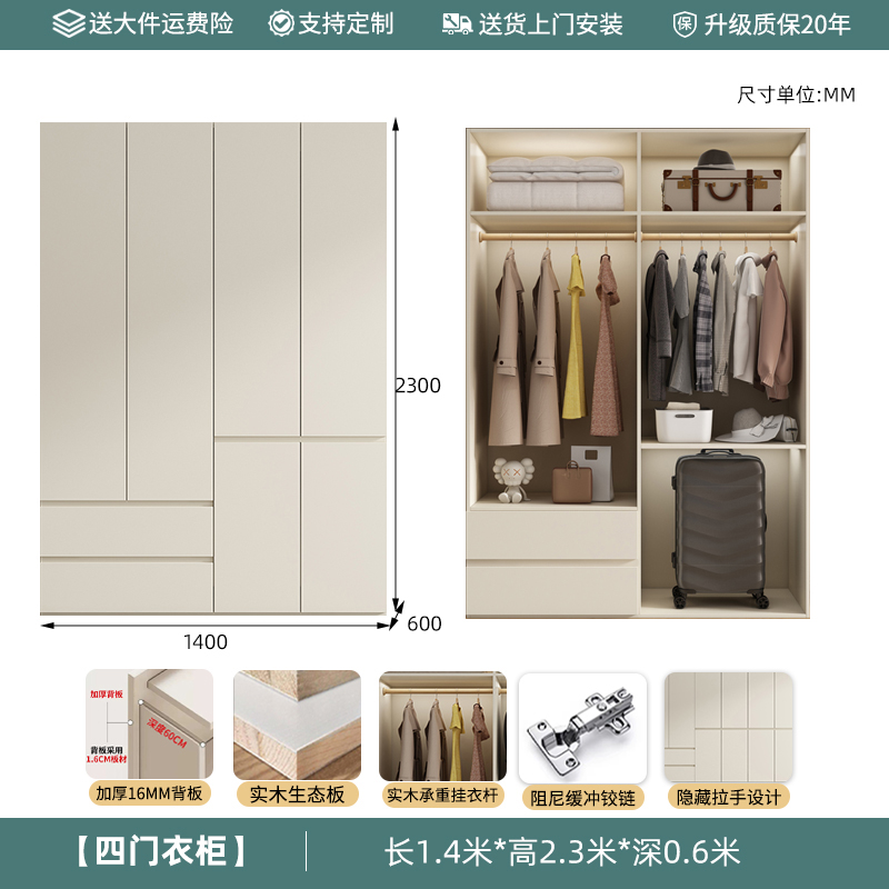 • 1.4* 2.3m 옷장 16mm 후면 패널/60 깊이 - 견고한 목재 패키지 설치