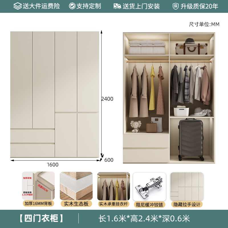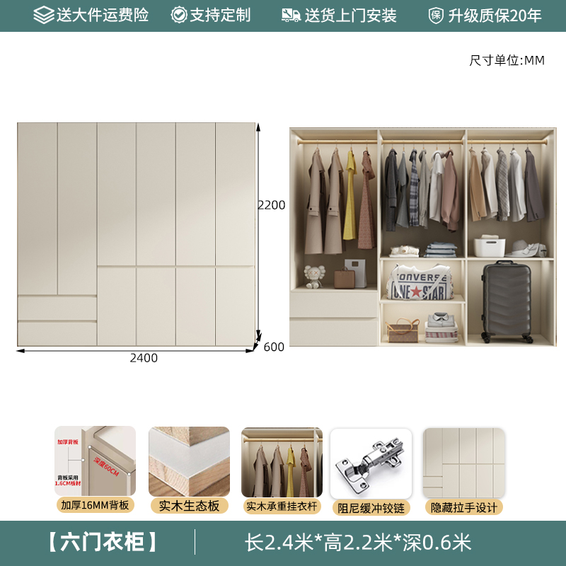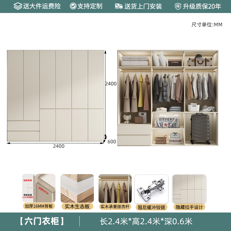 • 1.4* 2.4m 옷장 16mm 후면 패널/60 깊이 - 견고한 목재 패키지 설치