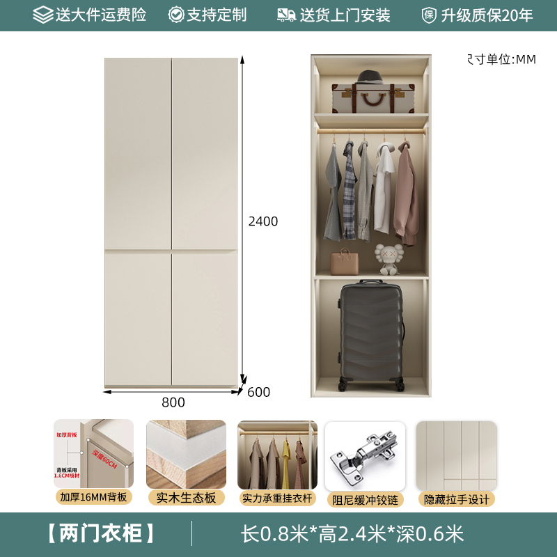 • 0.8* 2.2m 옷장 16mm 후면 패널/60 깊이 - 견고한 목재 패키지 설치