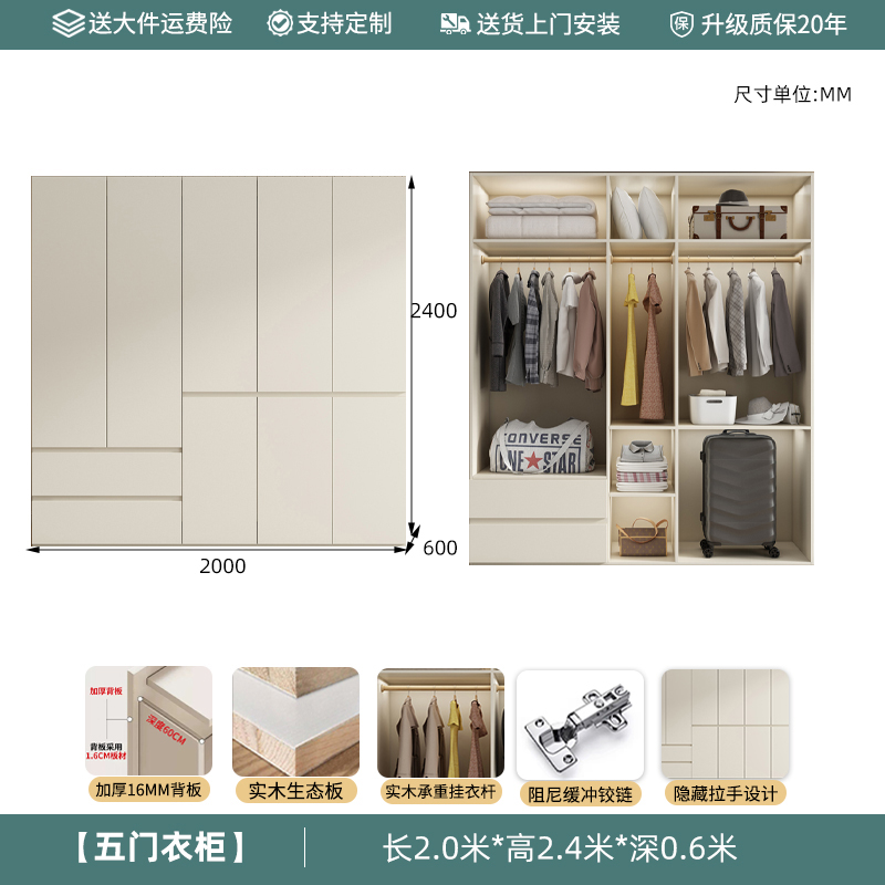 • 1.4* 2.2m 옷장 16mm 후면 패널/60 깊이 - 견고한 목재 패키지 설치