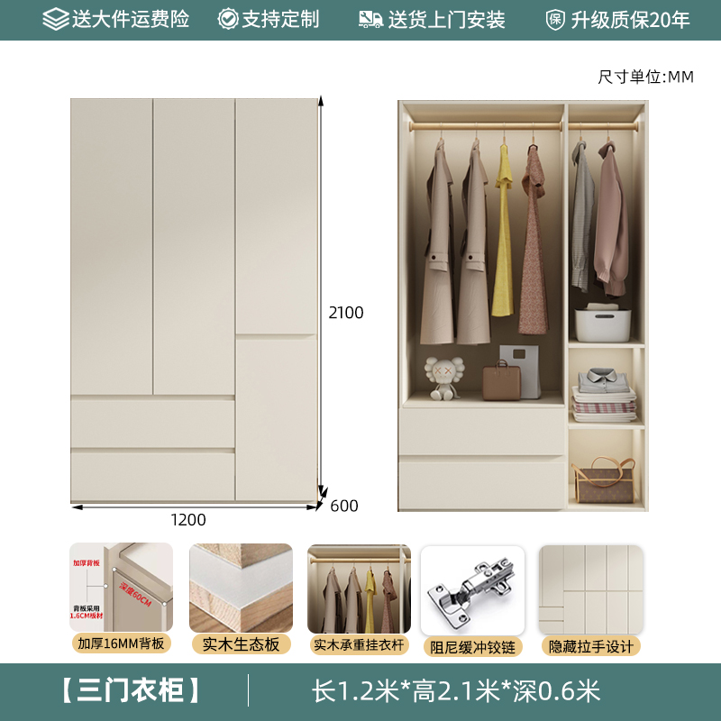 • 0.8* 2.1m 옷장 16mm 후면 패널/60 깊이 - 견고한 목재 패키지 설치