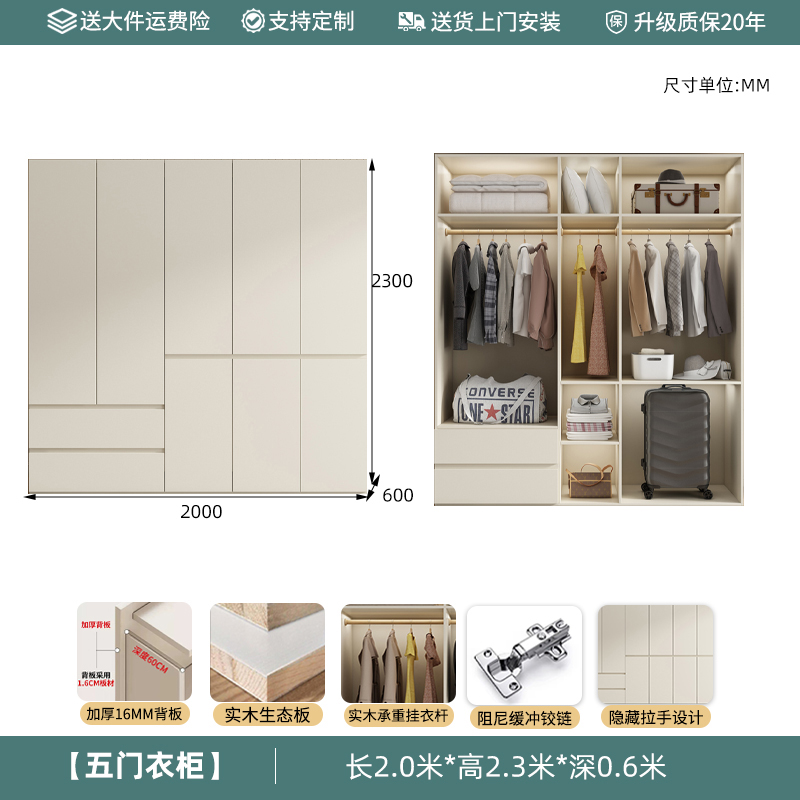 • 1.6* 2.3m 옷장 16mm 후면 패널/60 깊이 - 견고한 목재 패키지 설치