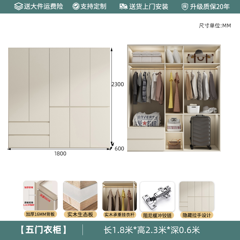 • 1.8* 2.3m 옷장 16mm 후면 패널/60 깊이 - 견고한 목재 패키지 설치
