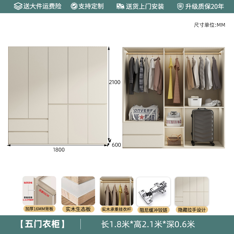 • 1.8* 2.1m 옷장 16mm 후면 패널/60 깊이 - 견고한 목재 패키지 설치