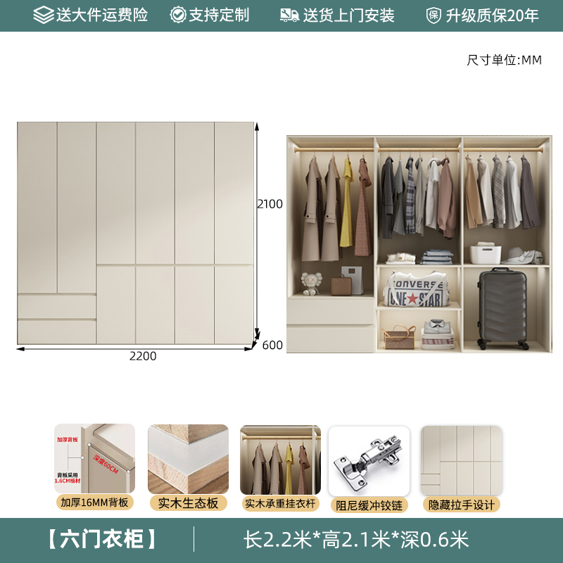 • 2.2* 2.0m 옷장 16mm 후면 패널/60 깊이 - 견고한 목재 패키지 설치