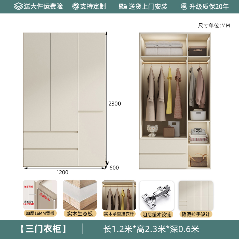 • 0.8* 2.3m 옷장 16mm 후면 패널/60 깊이 - 견고한 목재 패키지 설치