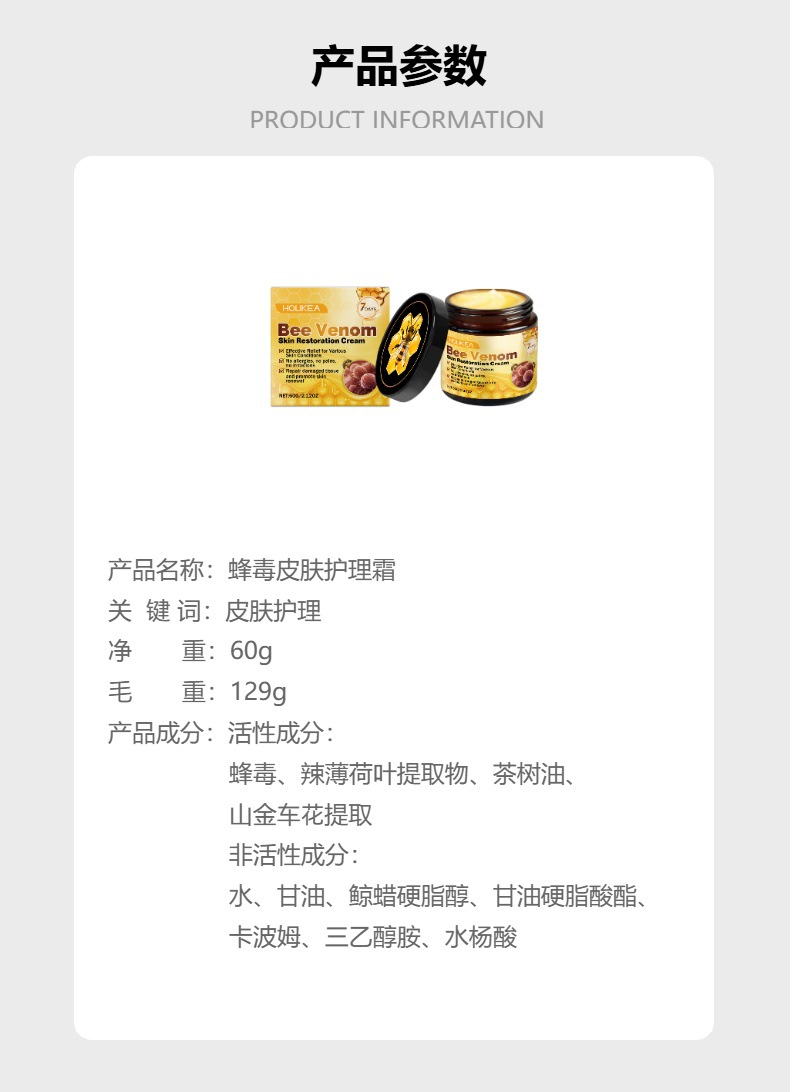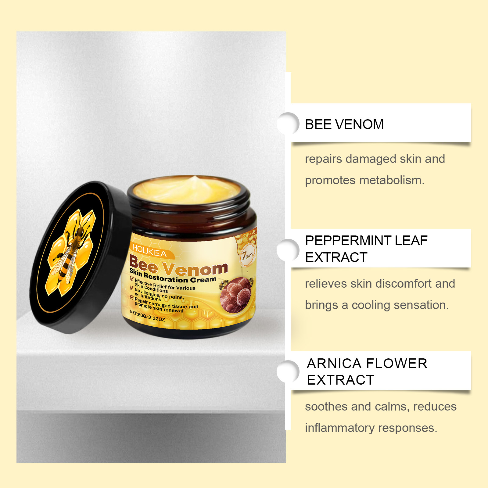 HOUKEA 꿀벌 독 스킨 케어 크림 부드러운 클렌징 보습 및 부드러운 피부 진정 케어 크림