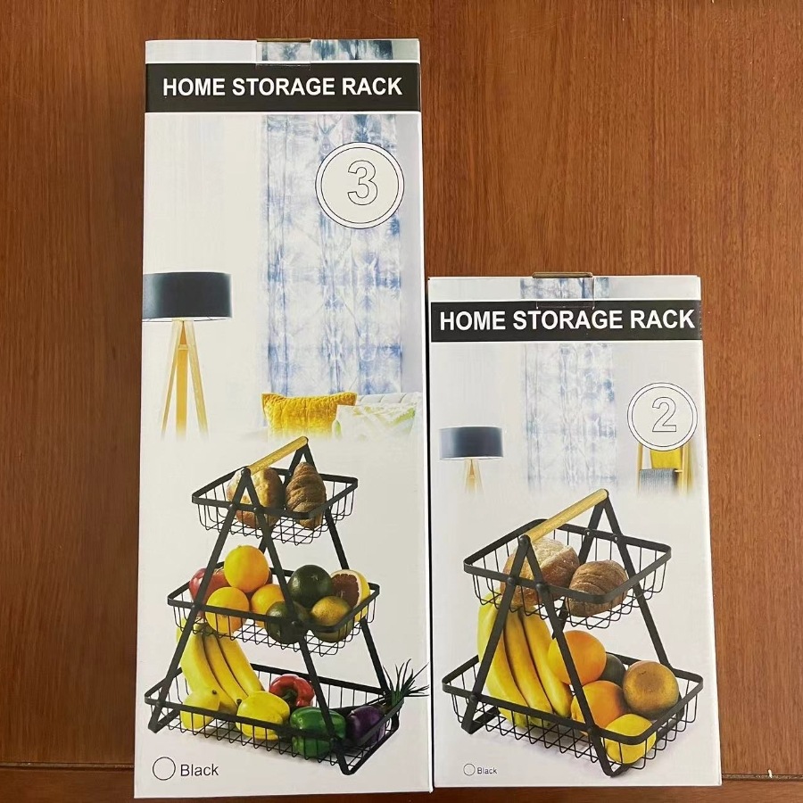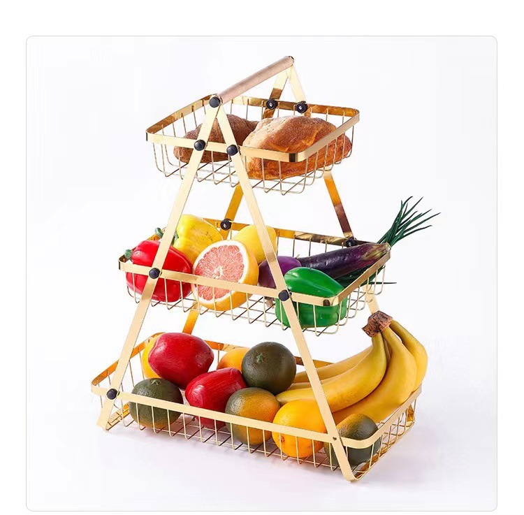 이동식 철 과일 바구니 더블 레이어 3 층 휴대용 바구니 거실 주방 빵 간식 보관 바구니 랙