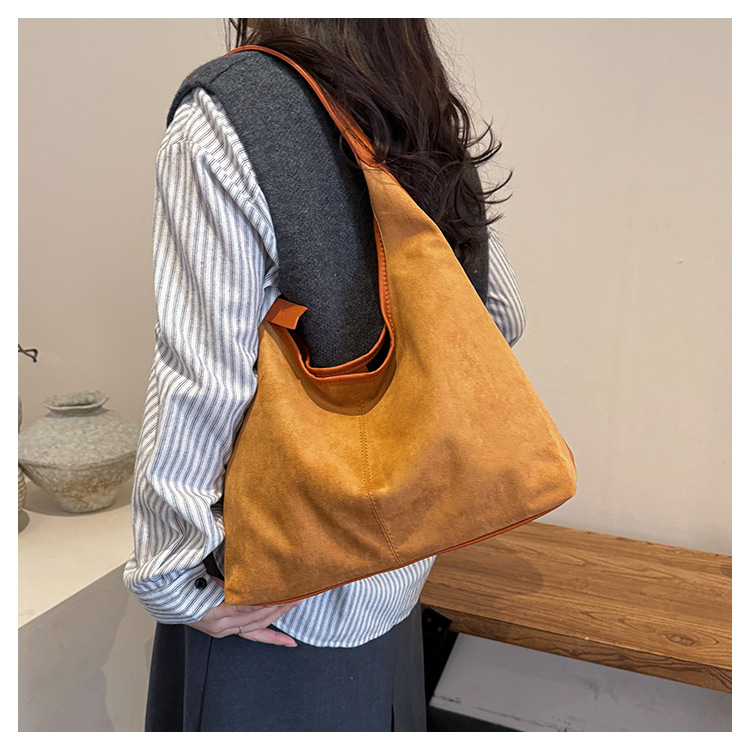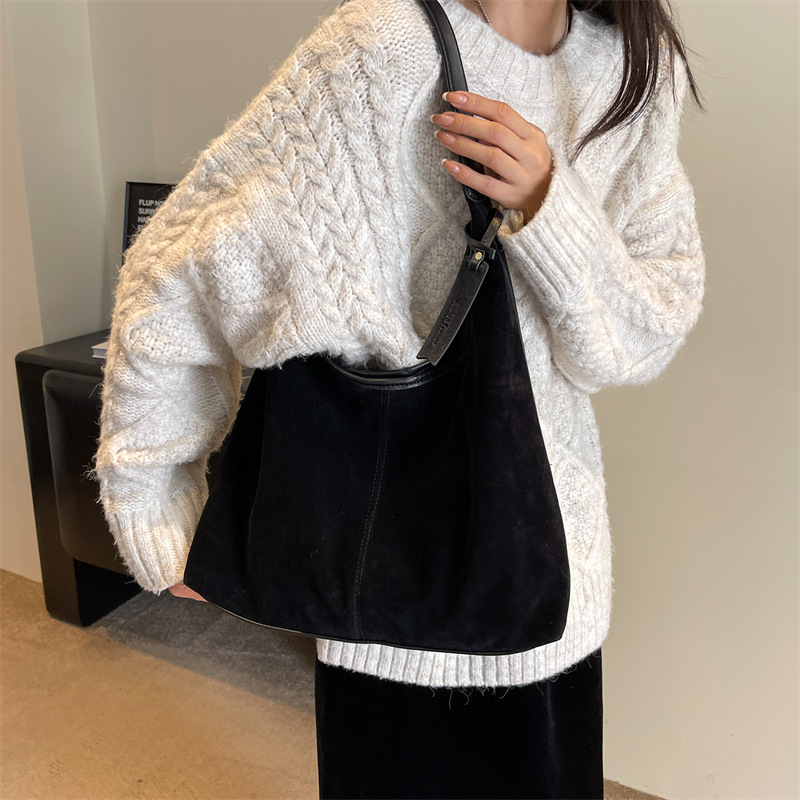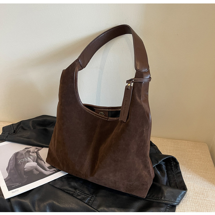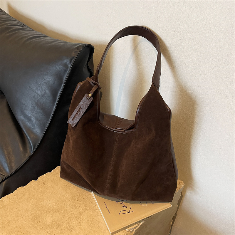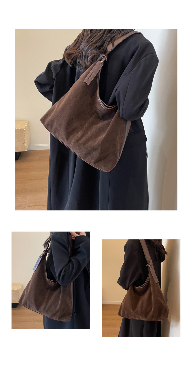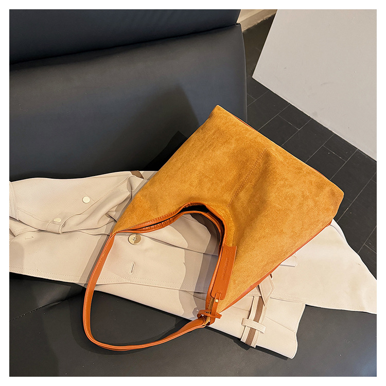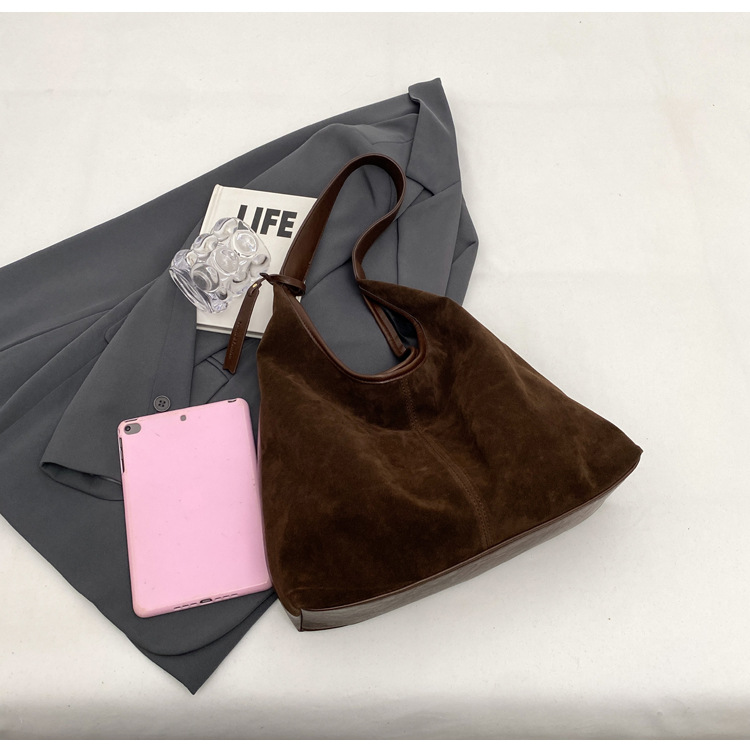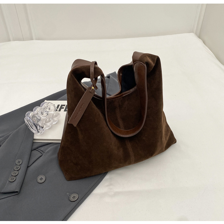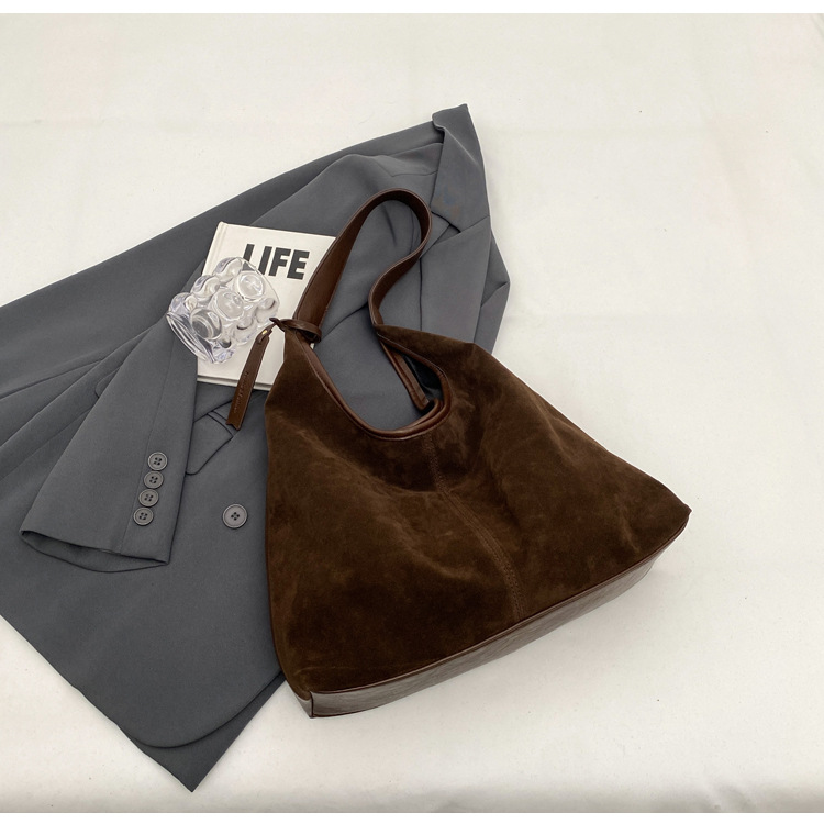 새로운 스웨이드 숄더 토트 백, 패셔너블하고 심플하며 게으른 스타일, 대용량 여성용 핸드백, 버킷 백, 엄마 가방스토어 가기