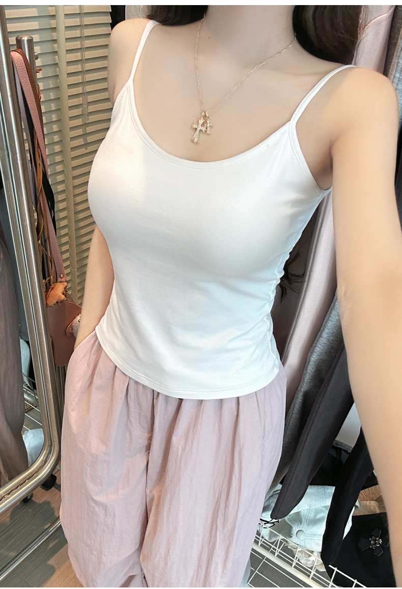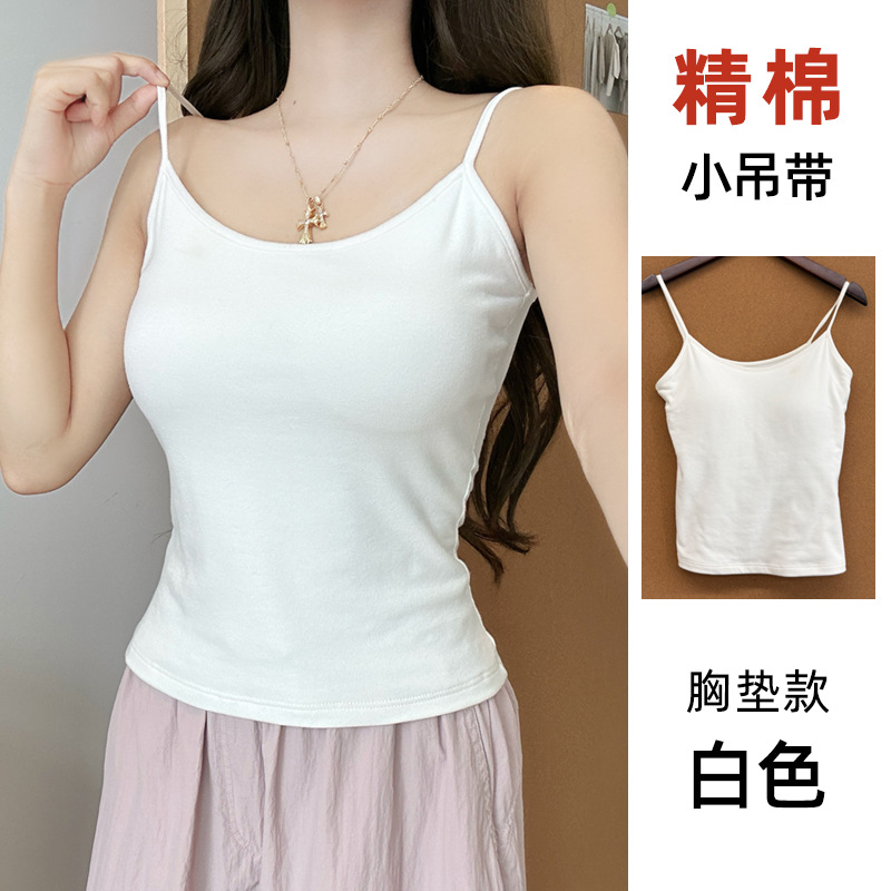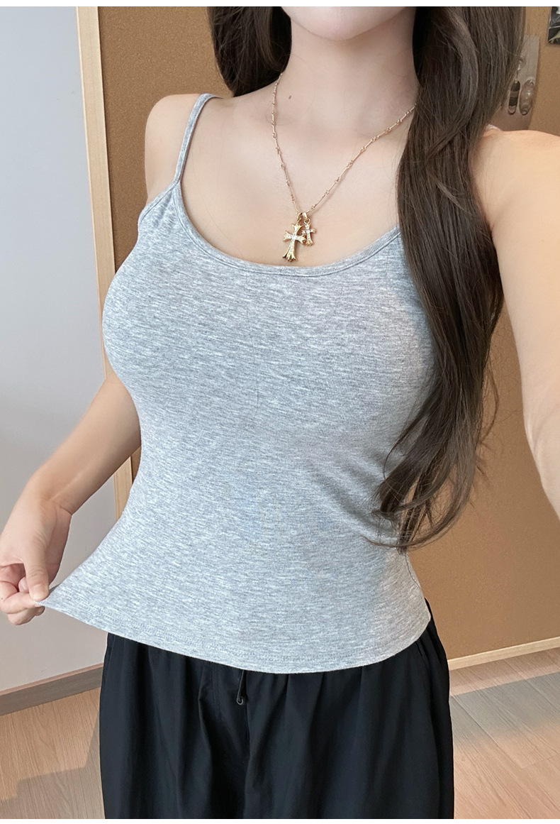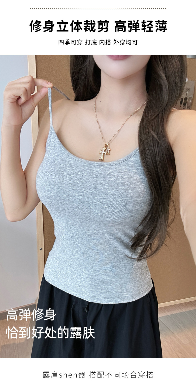 회색 Camisole 여성의 여름 착용 아름다운 등 통합 기본 벨트 가슴 패드 작은 가슴 외부 확장 큰 외부 착용 탑