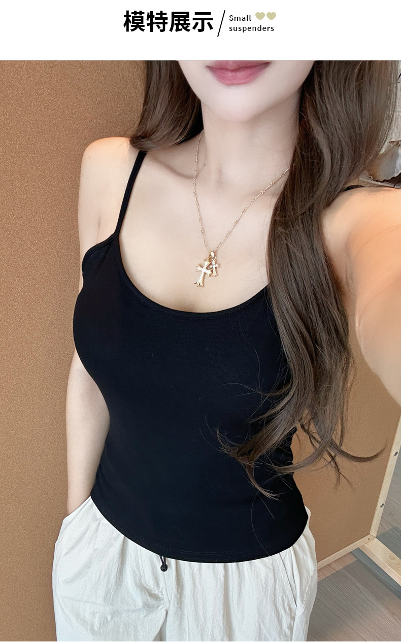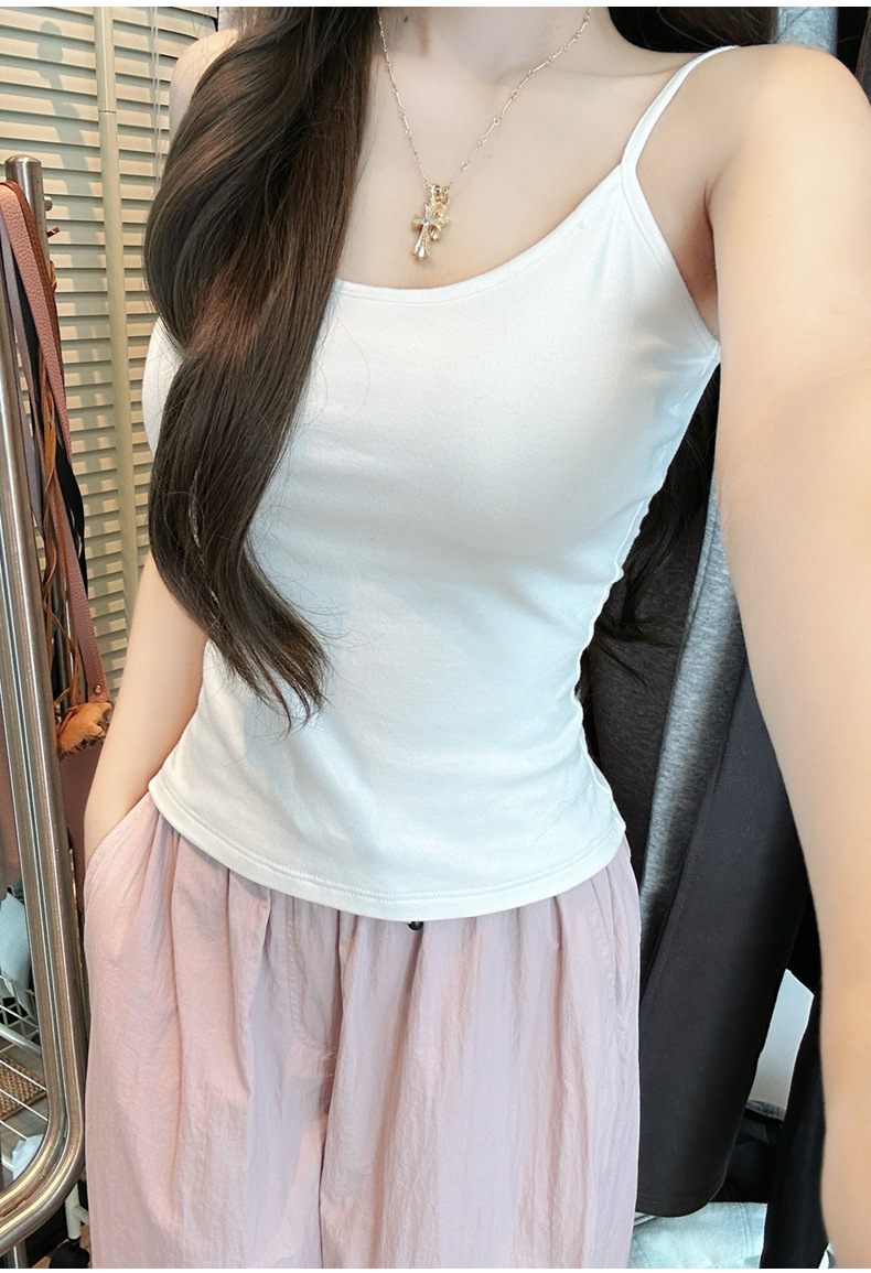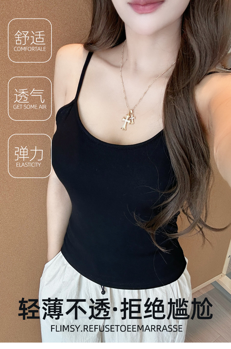 회색 Camisole 여성의 여름 착용 아름다운 등 통합 기본 벨트 가슴 패드 작은 가슴 외부 확장 큰 외부 착용 탑