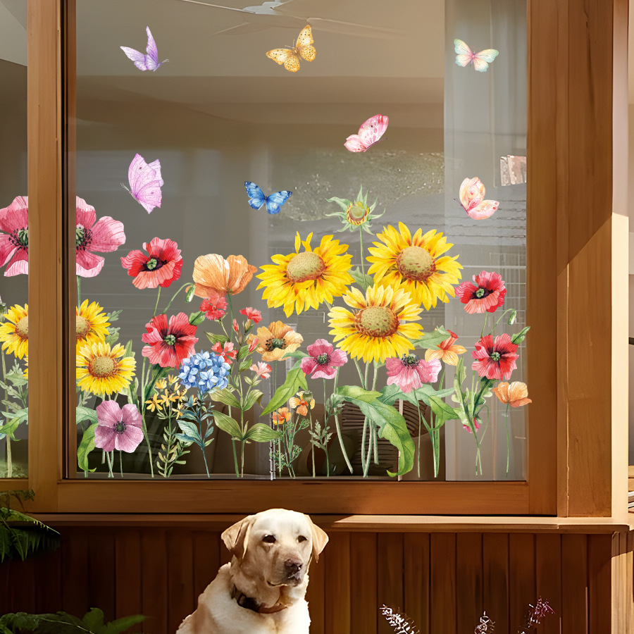 BR3427E 수채화 시뮬레이션 3 차원 나비 꽃 장식 유리 창 스티커 양면 시각적 침실 자체 접착 스티커스토어 가기