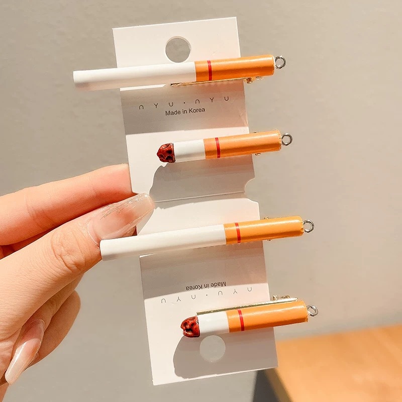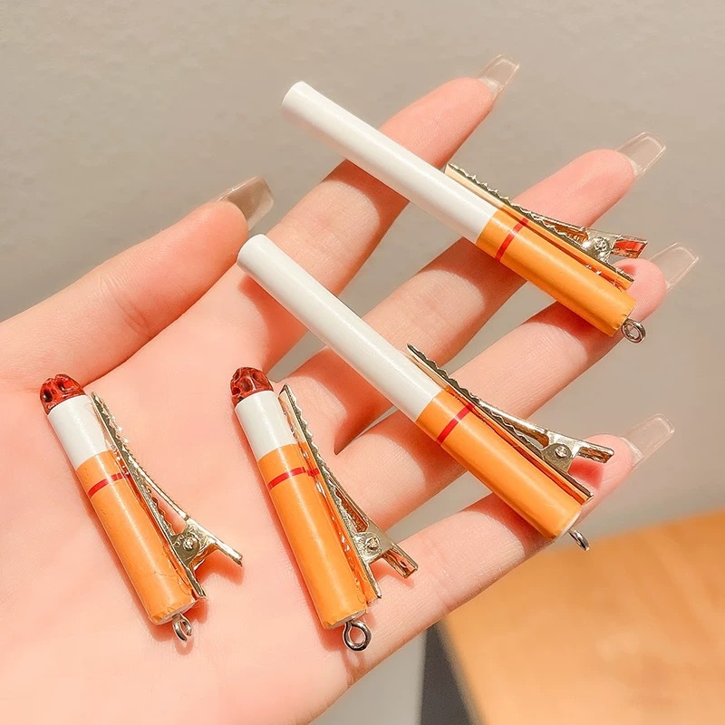 [집단 금연] 웃긴 시뮬레이션 담배 헤어핀 스파이스 소녀 헤어핀 인터넷 레드 사이드 클립 여성 재미 헤드웨어 헤어 액세서리
