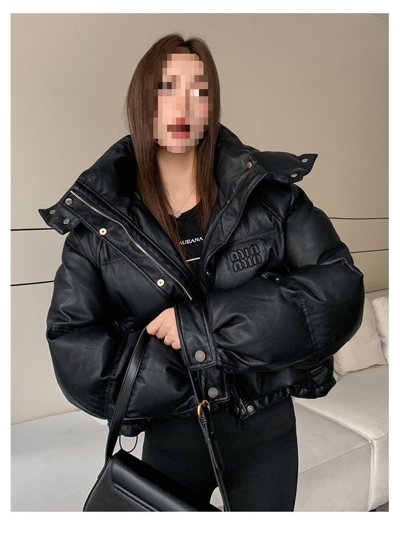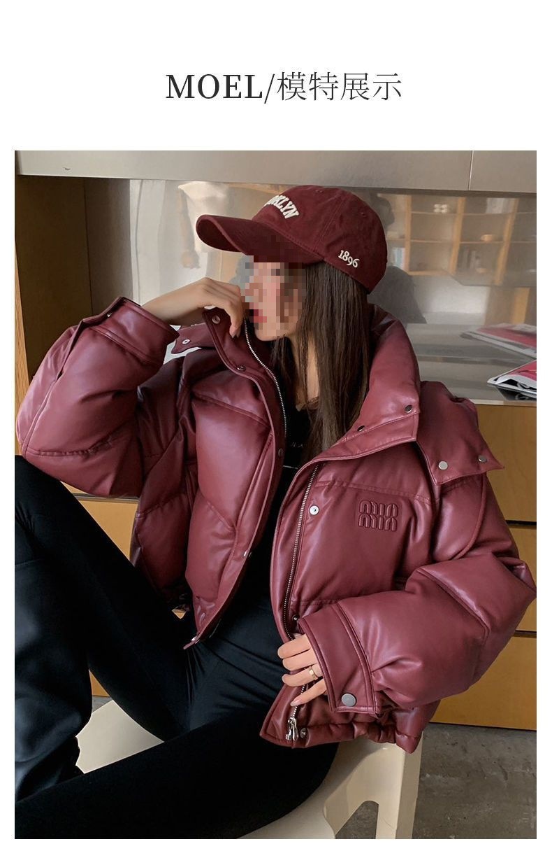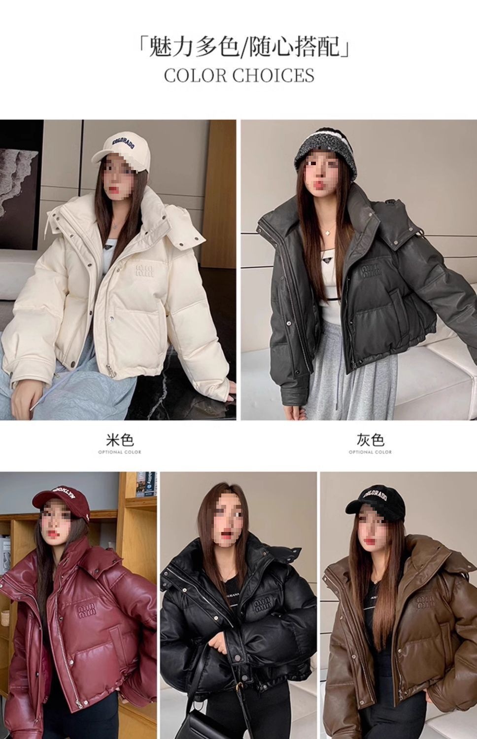 PU 가죽 짧은 워시없는 후드 다운 재킷 여성의 새로운 느슨한 유행 간단한 Maillard 통근 재킷스토어 가기