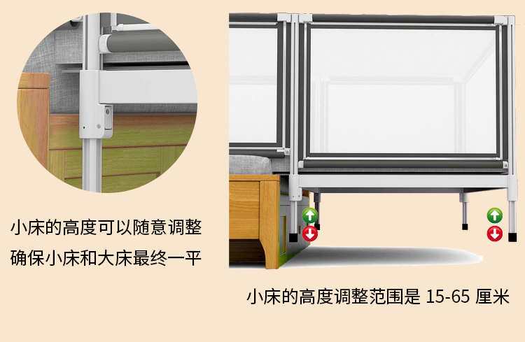 조립식 침대 어린이 침대 아기 침대 원목 확장형 침대 철제 울타리 남아 여아 높이 조절 가능 왕삼촌스토어 가기