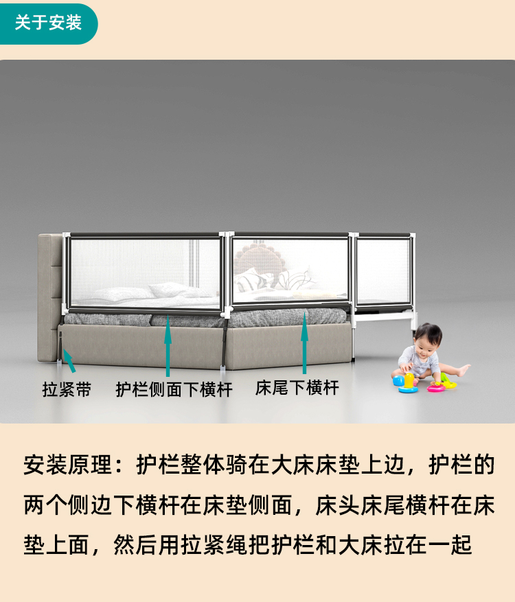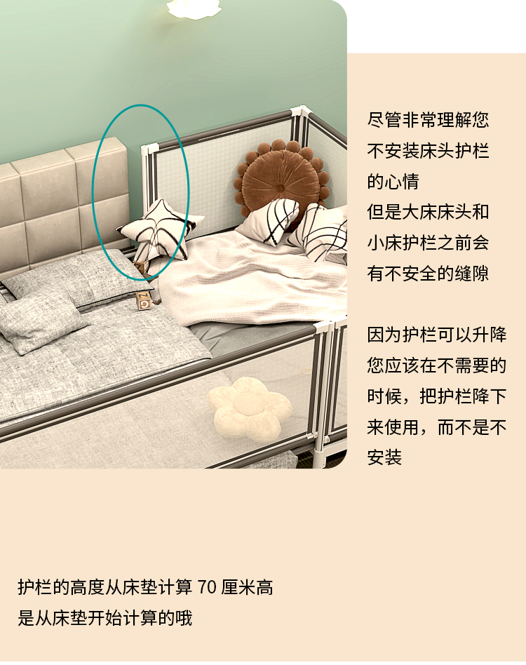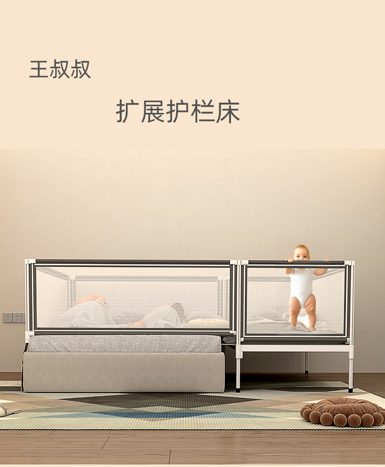 • ☆★확장형 안전 가드 침대 (매트리스 미포함), 1.8*2.0 사이즈 대형 침대에 적합☆★