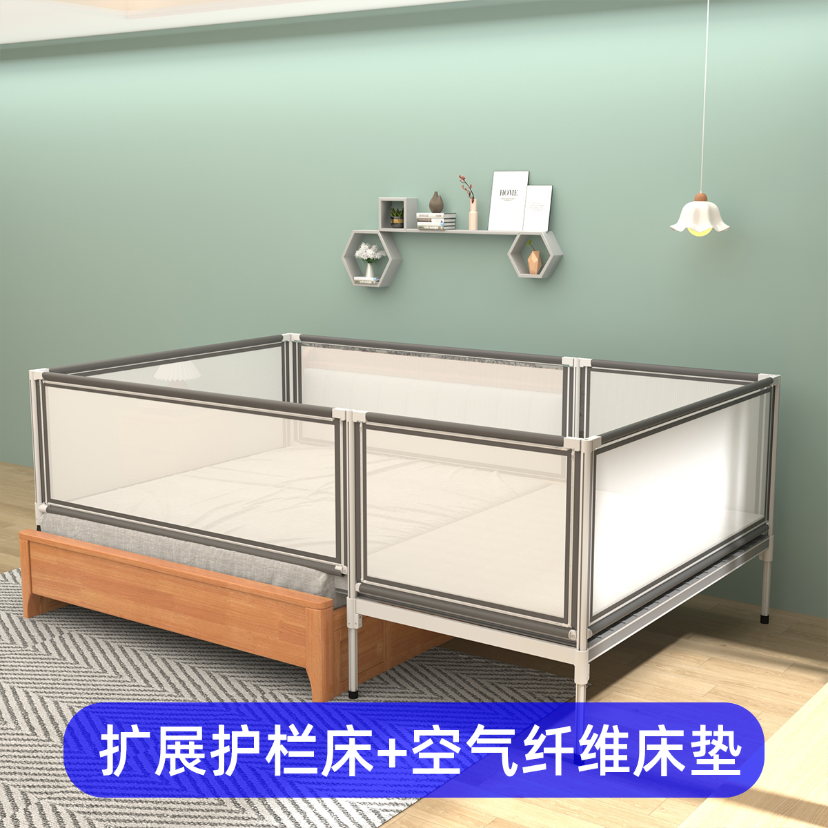 • ☆★확장형 안전 가드 침대 + 7cm 에어 파이버 매트리스 (1.8*2.0 대형 침대 호환)☆★