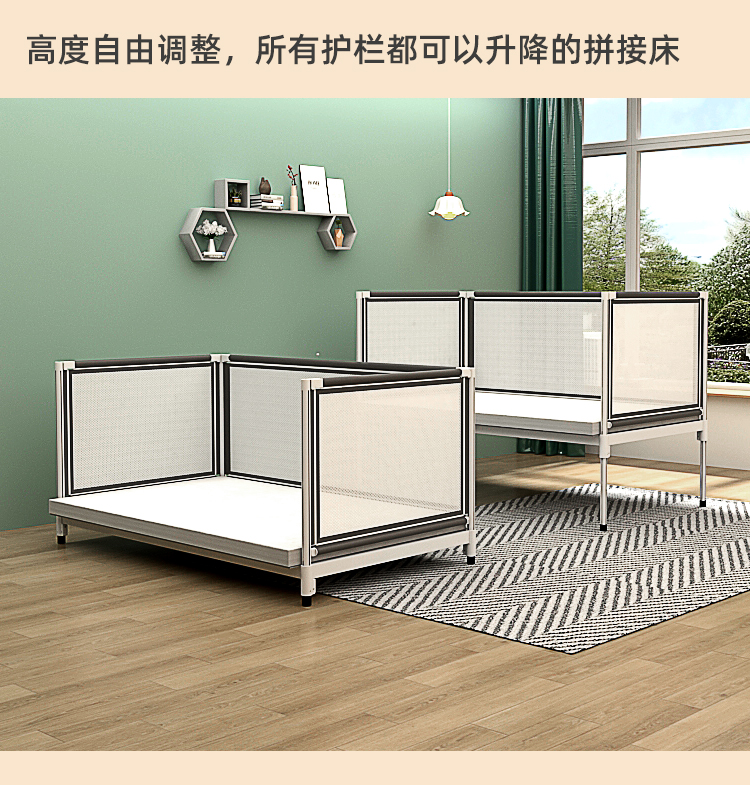 조립식 침대 어린이 침대 아기 침대 원목 확장형 침대 철제 울타리 남아 여아 높이 조절 가능 왕삼촌
