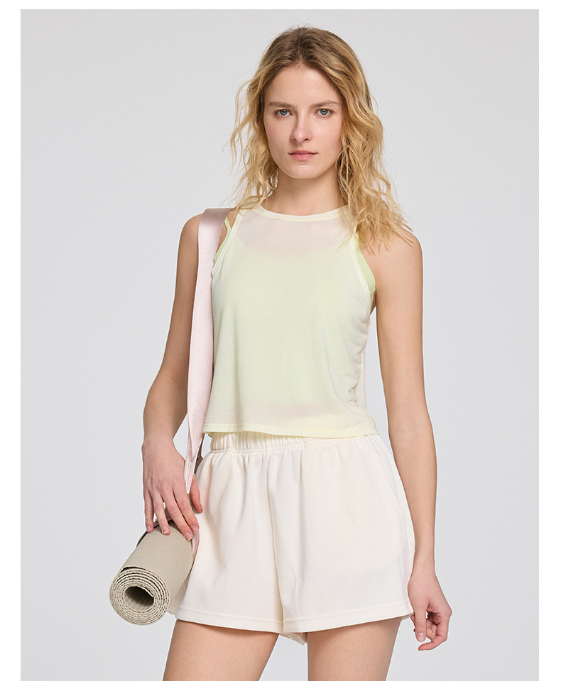 봄과 여름 2025 새로운 요가 착용 여성 텐셀 라이오셀 얇은 스포츠 탑 수분 흡수 빠른 건조 느슨한 피트니스 착용