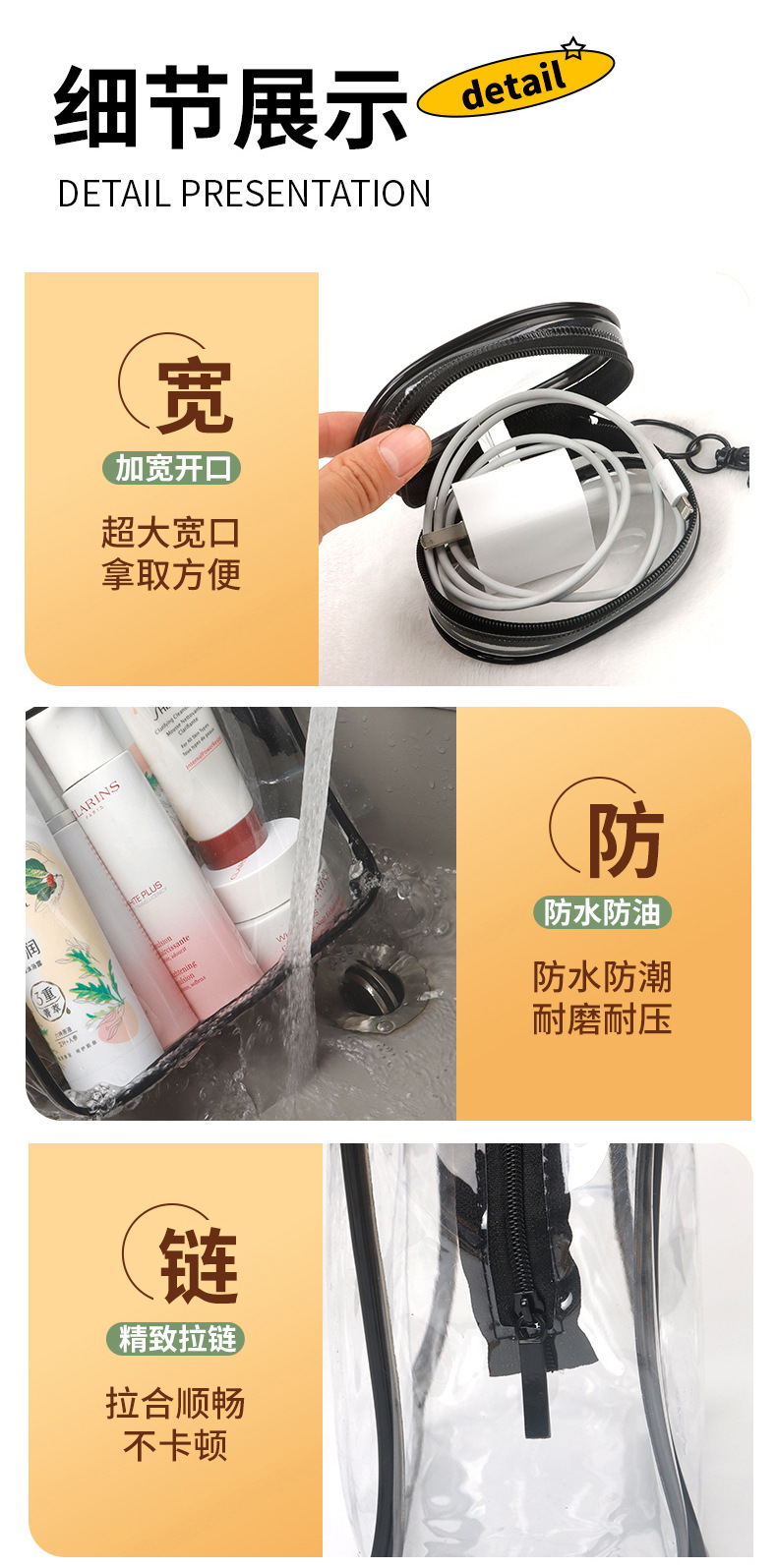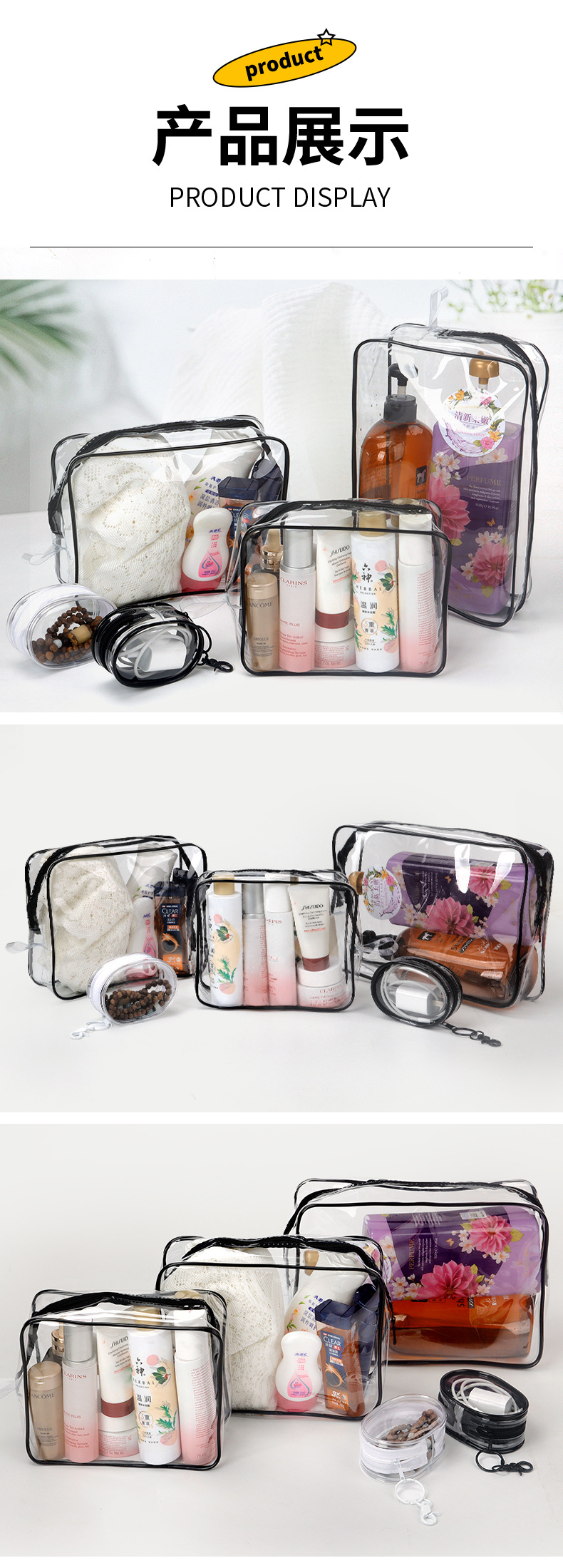 PVC 투명 방수 화장품 가방, 아기 산책 가방, 휴대용 방진 및 태양 보호 가방, PVC 여행용 수납 가방, 세면 용품 가방스토어 가기