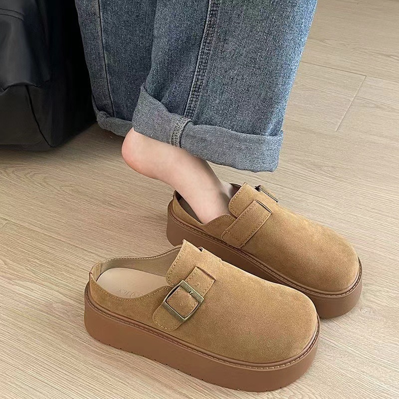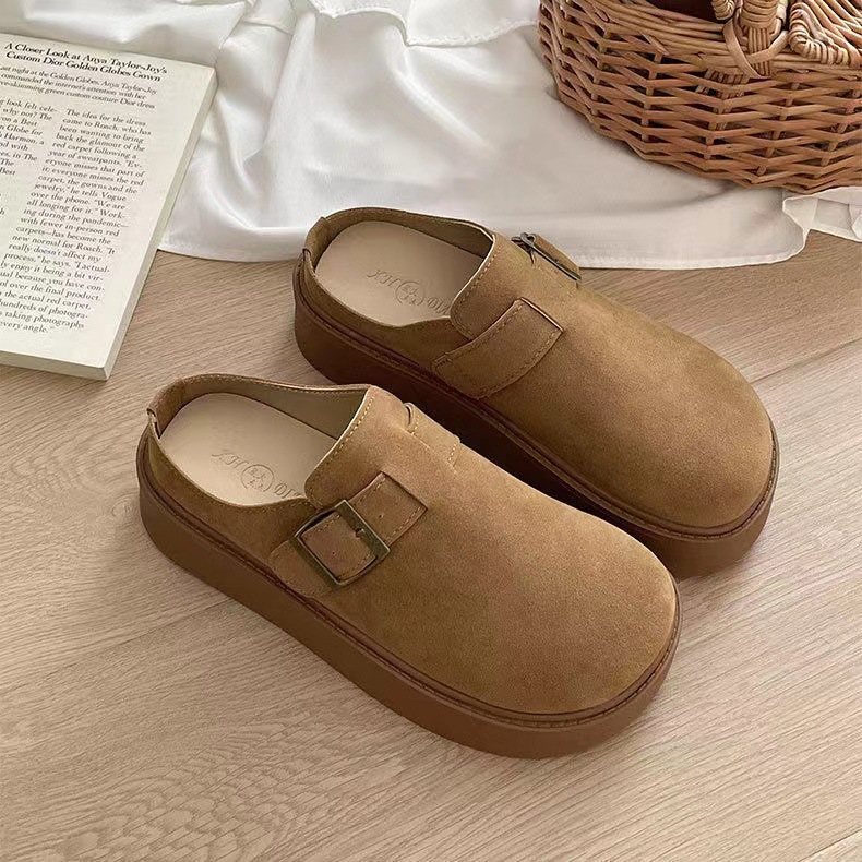 빈티지 두꺼운 밑창 Bucken Baotou 하프 슬리퍼 여성 2025 년 봄과 가을 새로운 고층 의상 게으른 슬립 온 여성용 신발스토어 가기