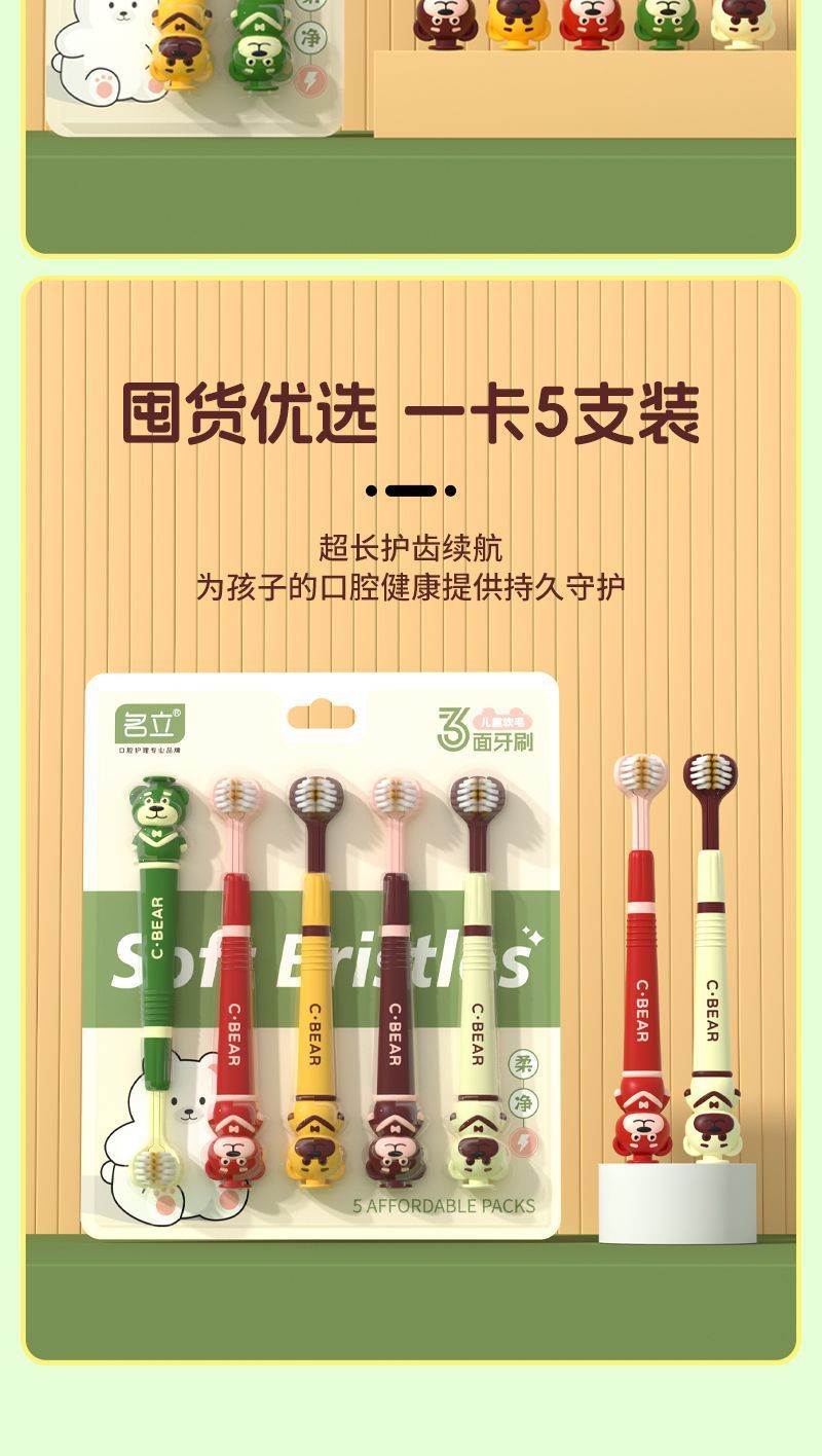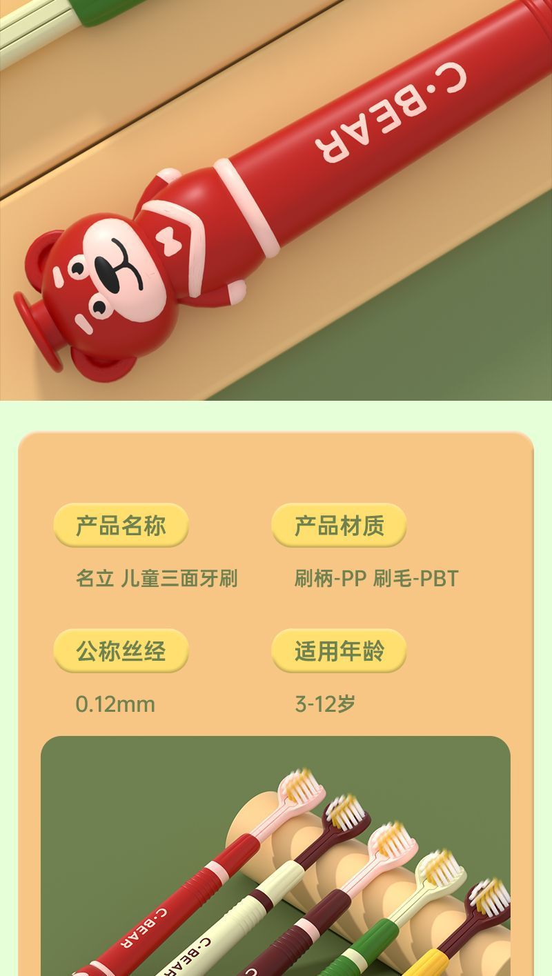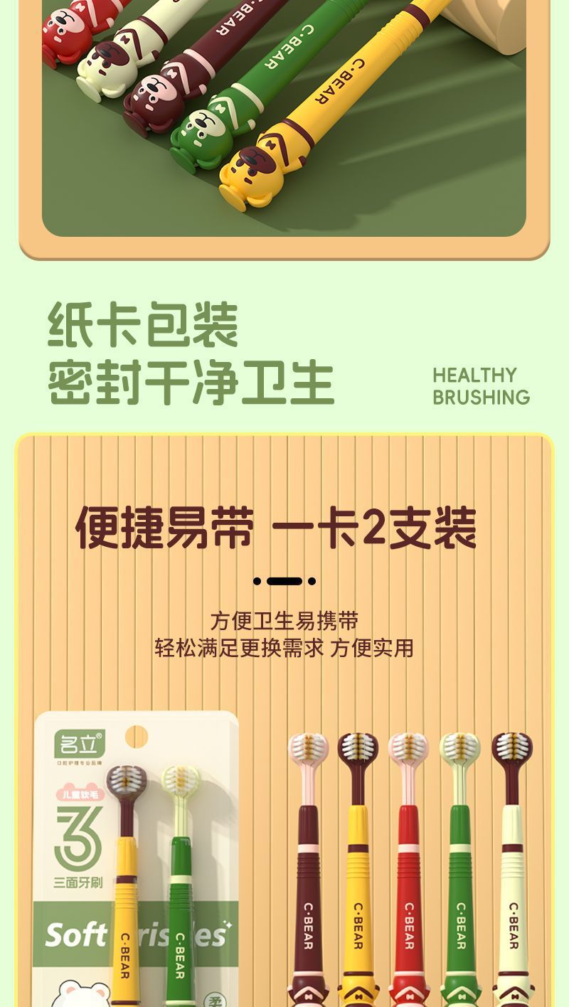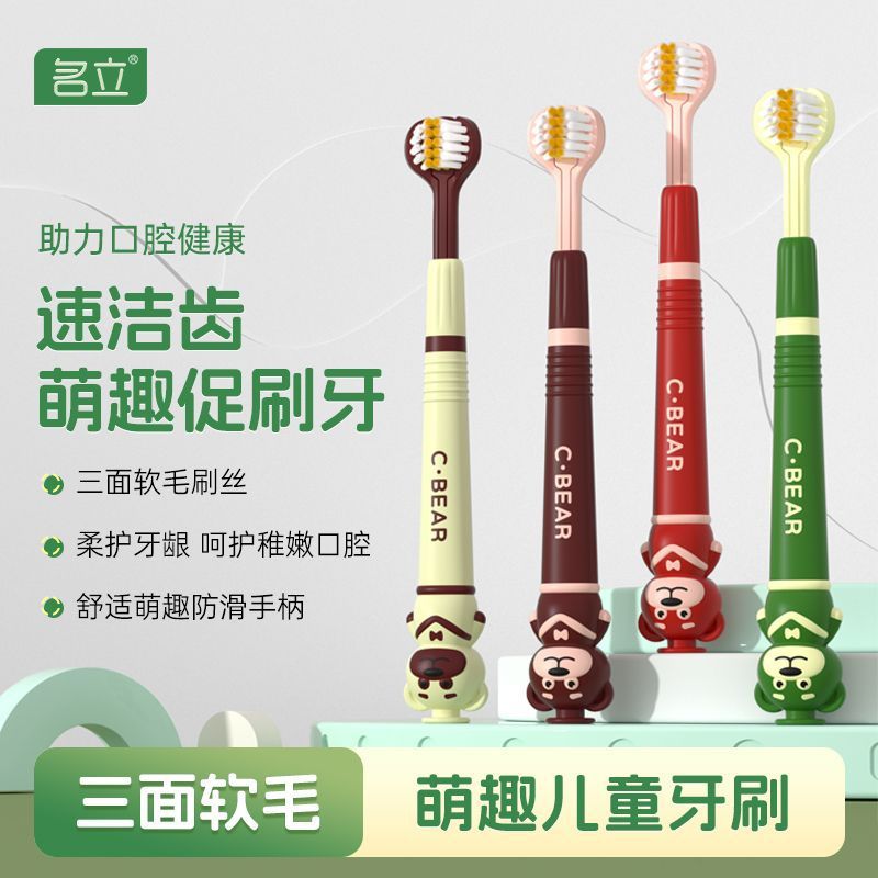 유명한 어린이 부드러운 머리 3 면 칫솔 3-12 세 만화 곰 3 차원 풀 래핑 어린이 청소 칫솔 도매스토어 가기