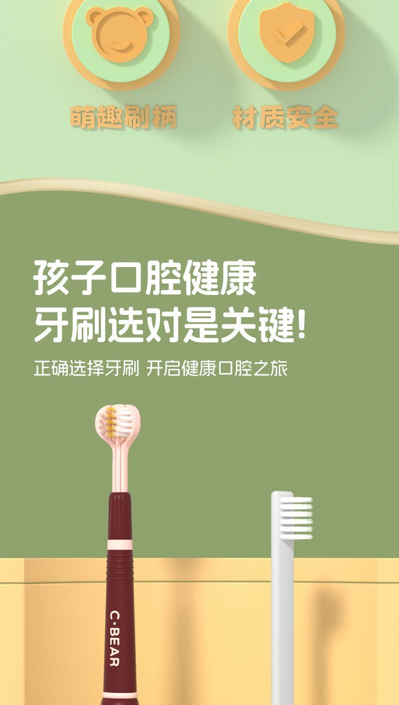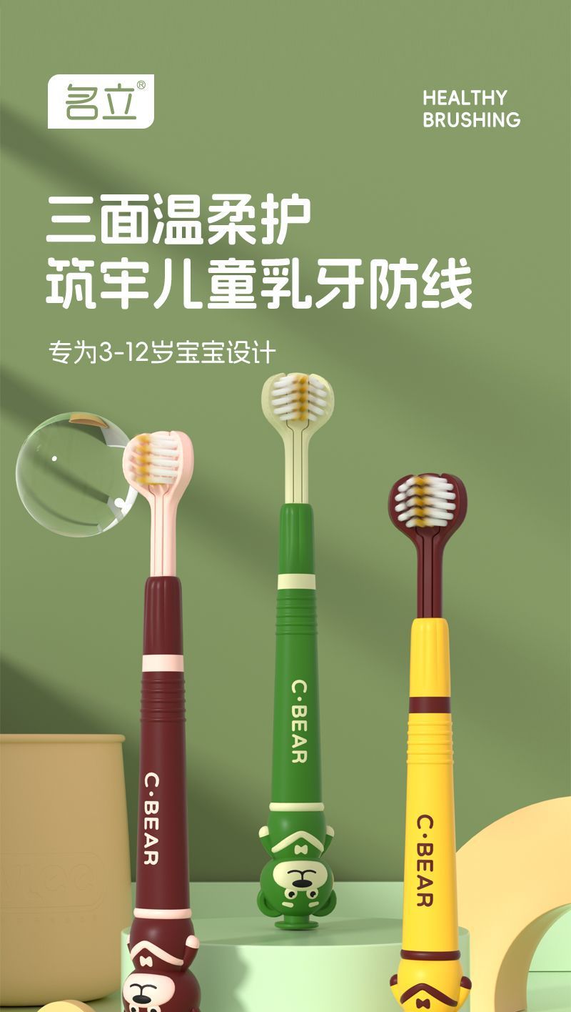 유명한 어린이 부드러운 머리 3 면 칫솔 3-12 세 만화 곰 3 차원 풀 래핑 어린이 청소 칫솔 도매